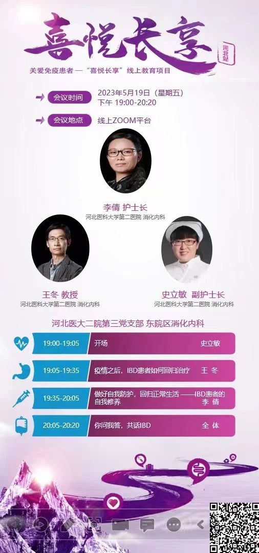 5月19日19:00-20:00,护士长李倩护、医生王冬就“了解克罗病和溃疡性结肠炎”、“做好自我防护,回归正常生活”分别在线上为大家做了详细的讲解,并进行答疑,让患者足不出户就能得到三甲医院医护人员的专业指导,提升了患者的就医获得感。