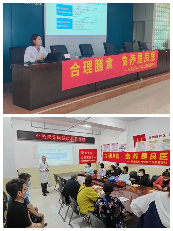 5月16日、17日,在健康管理部组织下,王燕与医院众多知名专家一起前往石家庄汇君城社区,为社区居民进行了义诊,耐心细致地为群众答疑解惑,提供了专业的营养建议。营养科石剑、贡丽雅分别前往石家庄长安花苑社区和鹿泉供电局,为社区居民和企业职工带来了以“心脑血管疾病的健康管理”为主题的营养健康知识讲座,讲解合理膳食的要点,纠正不科学的饮食习惯,参与群众纷纷表示受益匪浅。