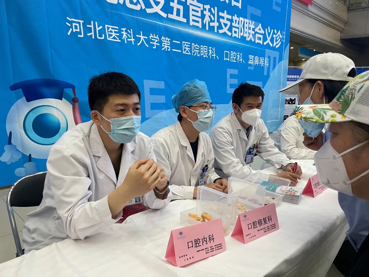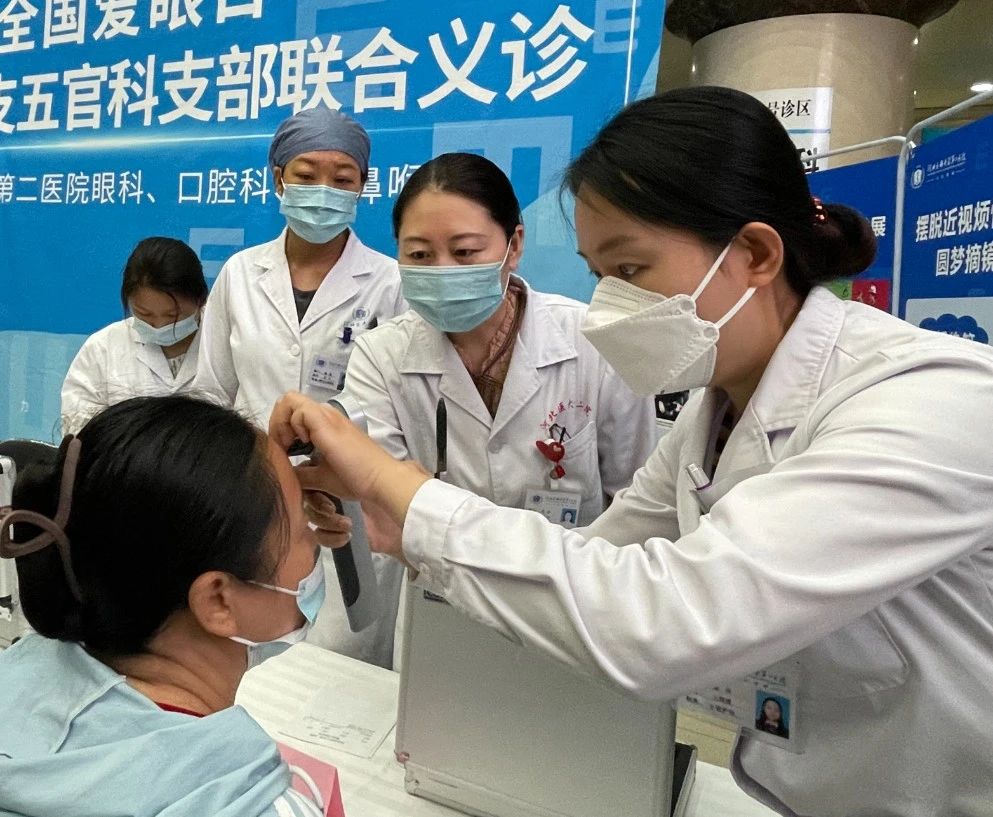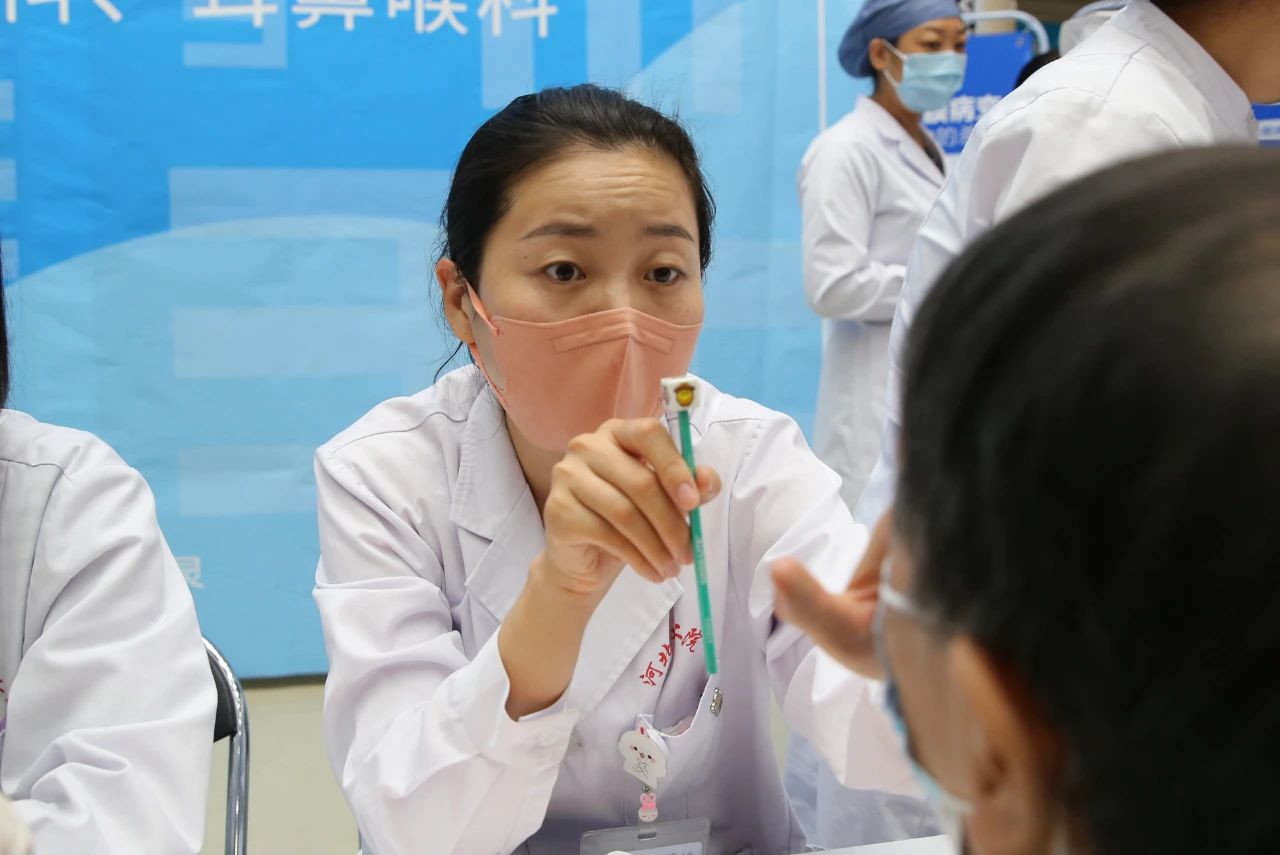 义诊中,眼科义诊专家在党支部书记尚庆丽带领下细心为每位患者进行眼病筛查并耐心答疑,眼科护理人员及眼视光专业学生志愿者免费为患者进行视力、眼压、血压、血糖等测量,并进行了健康知识科普宣讲,发放了眼部疾病预防保健等多种宣传手册。口腔内科、口腔外科、口腔正畸科、口腔修复科、耳鼻喉一科和耳鼻喉二科的党员专家们携带医疗检查设备和一次性检查器械为广大群众进行了口腔、耳鼻喉健康筛查,同时细致宣传了口腔预防保健、口腔健康与全身健康关系、耳鸣耳聋、过敏性鼻炎等常见病防治的健康知识。