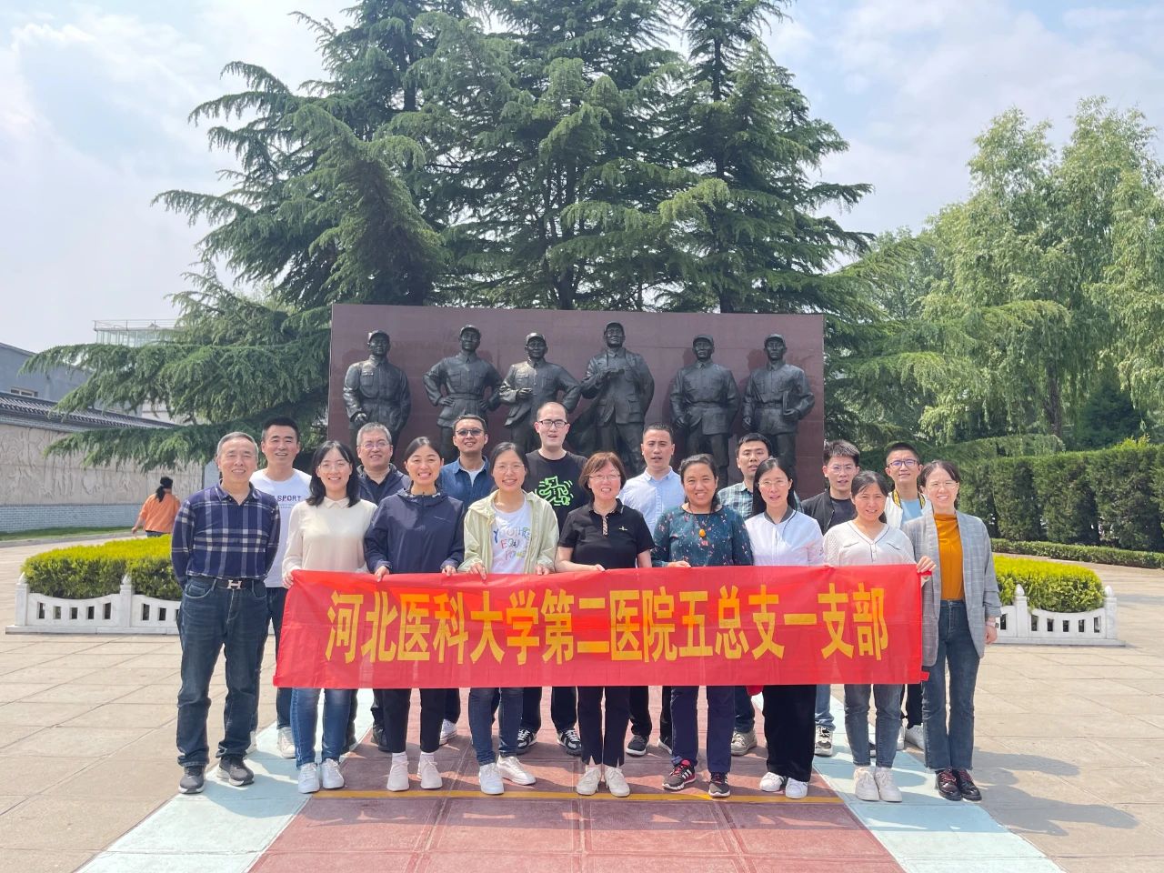 5月20日,东院党总支第六党支部书记、东院区普外一科主任王文耀带领支部党员赴平山李家庄中央统战部旧址开展了主题党日活动,先后参观了李家庄统一战线陈列馆、中央统战部旧址、民主人士接待站。