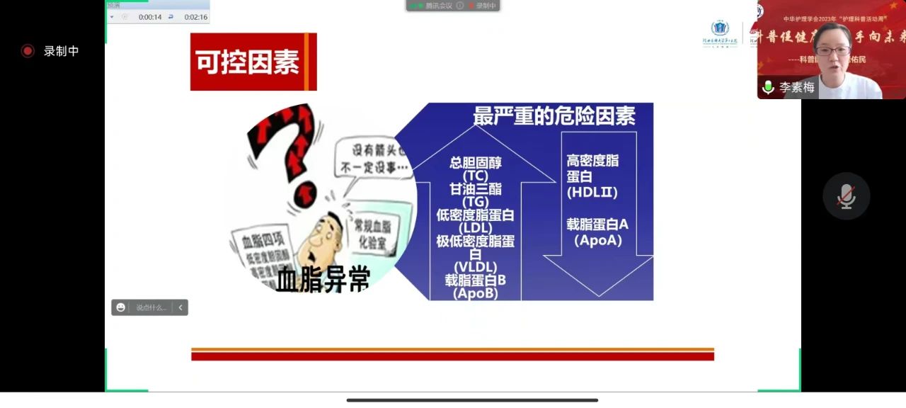 5月11日,第一党总支第三党支部开展的“科普促健康,携手向未来-科普助力,护老佑民”主题活动在线上举行,200余名患者参加了此次活动。此次科普涵盖了冠心病、急性心肌梗死、起搏器术后、高血压、心力衰竭、房颤、主动脉夹层等多种疾病。授课老师就常见心血管疾病的居家健康管理等问题进行了详细讲解,语言通俗易懂,内容贴近生活,受到了大家的一致好评。
