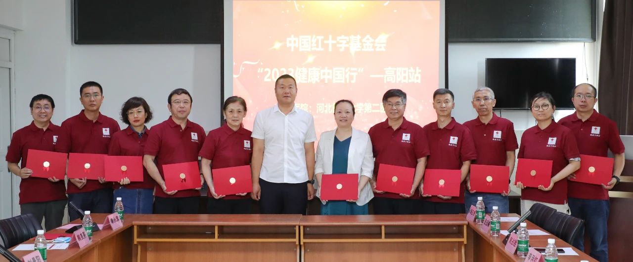 近日,由中国红十字基金会主办,我院承办的“2023健康中国行”高阳专场活动在高阳县人民医院举行。我院副院长阎雪与心血管内科谷新顺教授、消化内科冯志杰教授、肾内科李绍梅教授、内分泌科赵占胜教授、病理科李月红教授、泌尿外科谷军飞副教授、呼吸内科于婧副教授、妇科李亚楠副教授、放疗科张玉峰副教授9位专家参与本次活动。
