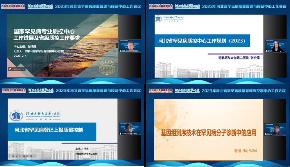 会议上,刘鹏秘书长在“国家罕见病专业质控中心工作进展及省级质控工作要求”中指出,中国罕见病医疗质量现状,迫切需要建立罕见病质控体系,提高罕见病医疗质量同质化水平,并对省级质控中心工作定位、工作特点及工作内容提出了具体要求。张松筠教授在“2023年河北省罕见病质控中心规划”报告中提出要建设各市罕见病质控网络、加强罕见病直报的质量控制及参与国家upwards项目等省级规划。为支持upwards项目,美国西奈山医学院蔡小强教授通过“基因组测序技术在罕见病分子诊断中的应用”,详细介绍了基因组测序技术适合人群及临床意义。质控中心秘书李杰对罕见病协作网医院病例上报工作进行了分享。