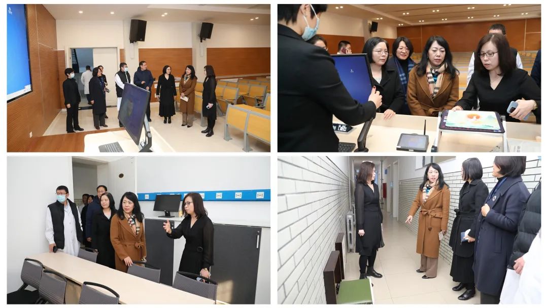 座谈会后,武校长一行实地查看了学生教室和临床技能培训中心,王圆圆处长和李明主任详细介绍了学生教室的功能和使用情况、临床技能中心的分区与实践教学资源情况。武校长表示,看到宽敞明亮的教室,以及功能齐备的技能操作室、丰富的技能操作视频资源,对二院即将到来的新学制改革后的教学工作充满了信心和期待。