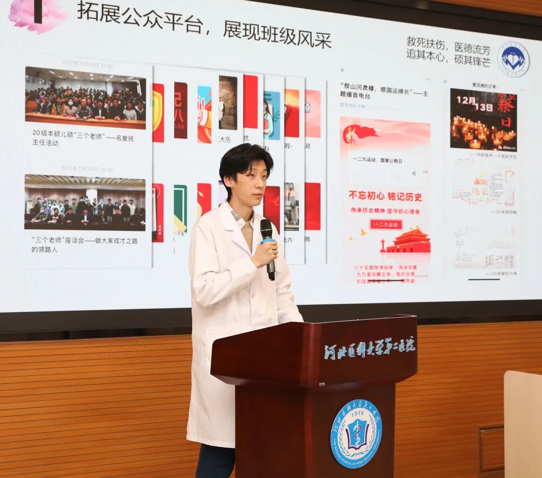 2020级本硕班李乾烨同学与儿科眼视光班刘辉同学先后用生动凝练的语言从党团建设、班级建设、学风建设、文体活动四方面向老师们展示了良好的班风班貌。形式多样的党团活动、新颖的新媒体应用、优异的学业成绩以及丰富的文体活动,充分展示出了朝气蓬勃的当代青年医学生形象。