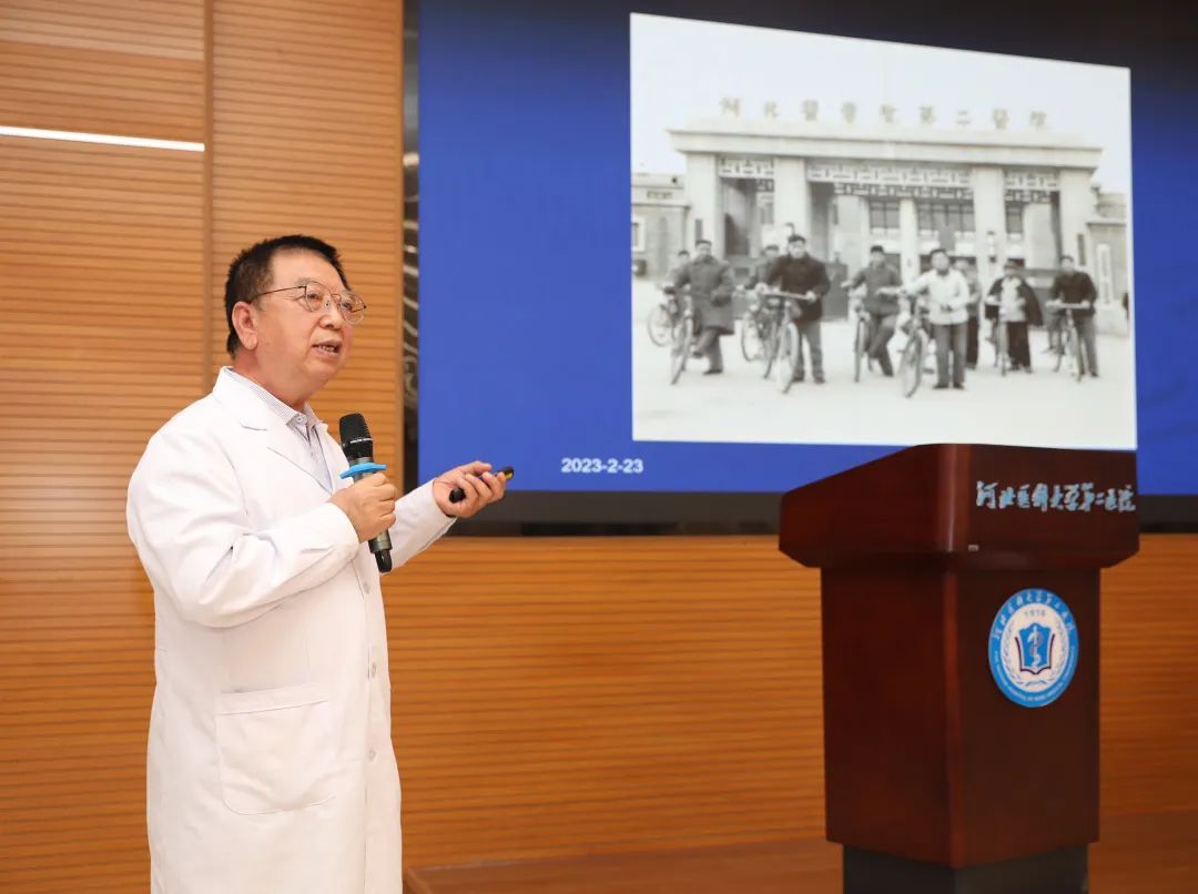 为了帮助新入院学生更多了解百年二院,刘怀军教授为同学们带来了一堂催人奋进的院史课。他用朴实无华的语言和一帧帧海量珍贵的图文勾勒出一代又一代二院人百年奋斗、百年坚持、百年成长的感人场景。以史为鉴,通过刘教授对二院百年的讲述,在鼓舞同学们学习前辈至精至诚的精神,无负韶华,实现理想的同时也为今后的临床学习、实践带来了启发。