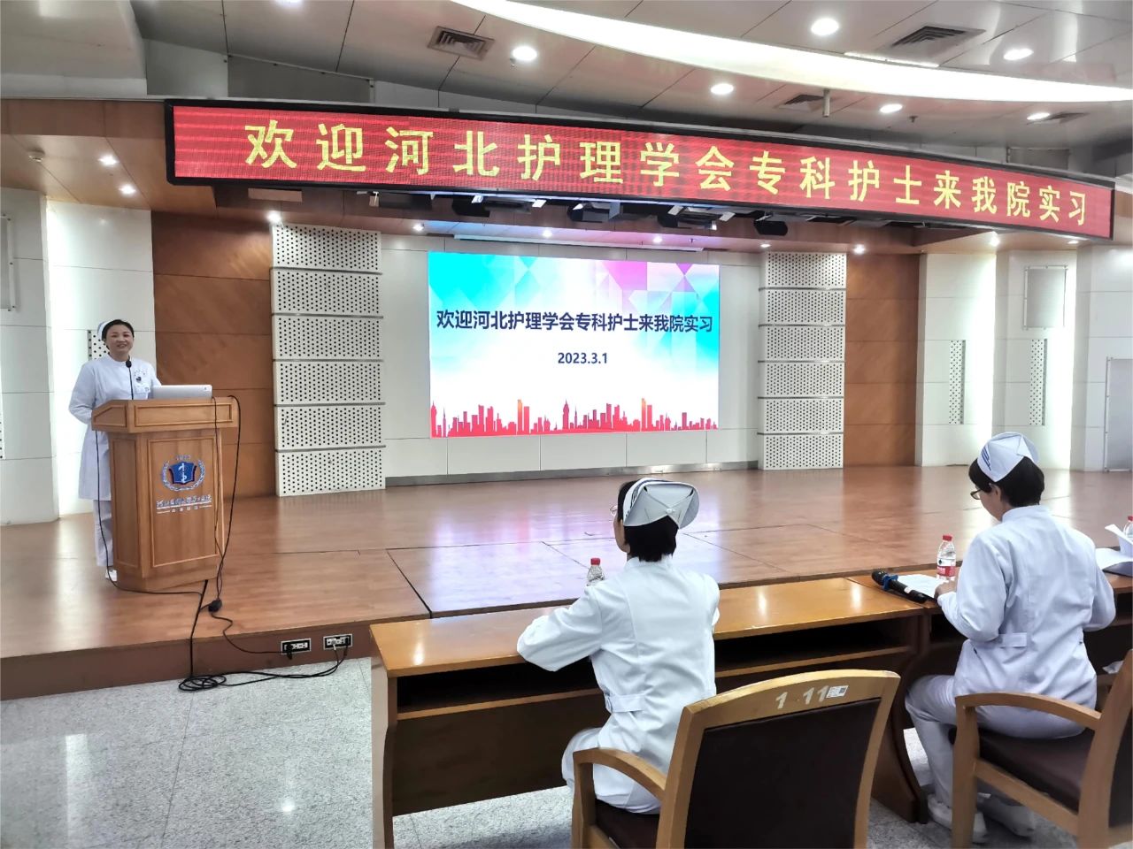 阳春三月,万物复苏,生机盎然。3月1日,我院护理部举办河北护理学会专科护士临床实践欢迎仪式,87名专科护士将在我院急诊、手术室、伤口造口、静脉治疗、老年、康复、营养7个不同专业开展临床实践学习。副院长于宝海,护理部主任张丽华,护理部副主任刘素霞、高俊香、高永平,各专业基地负责人、带教科室护士长及带教老师参加欢迎仪式。欢迎仪式由护理部副主任刘会玲主持。