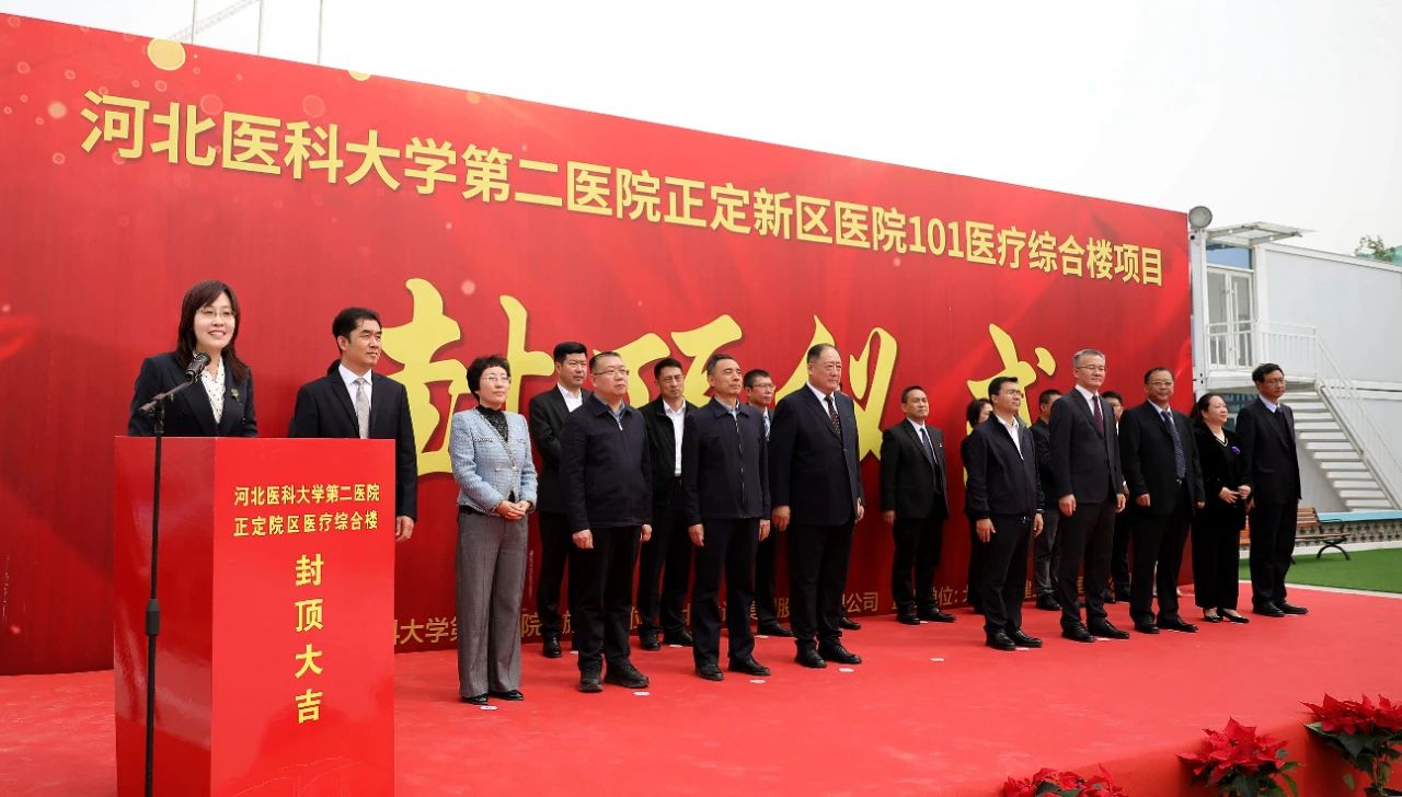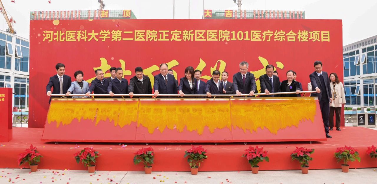 正定新区医院医疗综合楼主体结构的封顶,标志着工程建设进入了一个新的阶段,而下一阶段的施工任务更加艰巨,各项安装工程、精装修交叉作业更为复杂,我院一定不忘初心,牢记使命,全力把医疗综合楼打造成一项精品工程,向全省患者和一直支持我们的社会各界交出一份满意的答卷,为健康河北建设作出新的更大贡献。