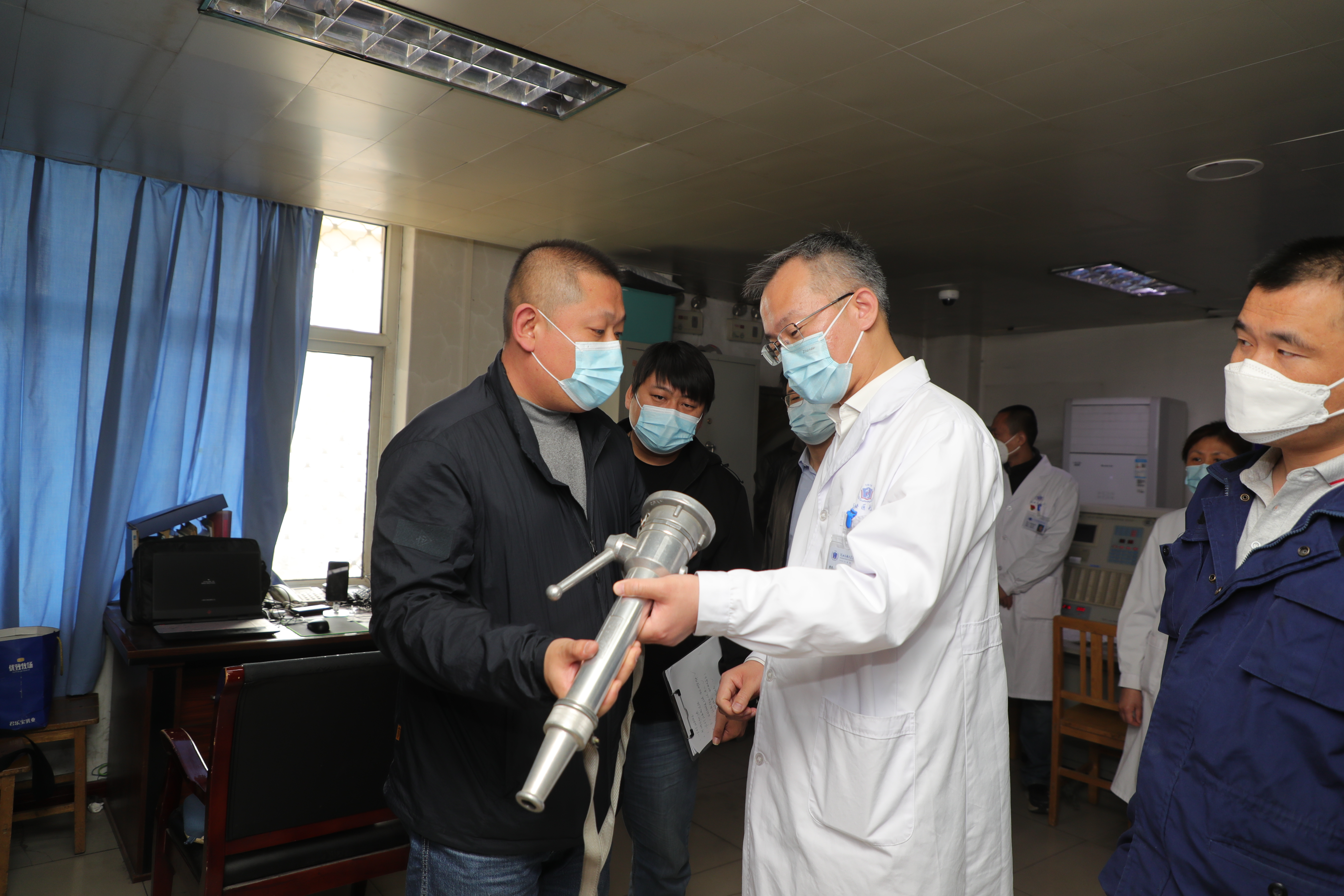 在督导检查医院安全生产工作中,李书记一行先后到职工餐厅、医用耗材库、普通物资库、学生宿舍、中心变电室、消防监控室、门诊楼、急诊科施工现场等容易存在安全隐患的重点区域,对消防安全、设施设备存放运行情况、安全用电、消防通道、学生和职工安全意识、安全培训、值班值守情况等方面进行了督导检查,对督导检查中发现的问题提出了整改意见。