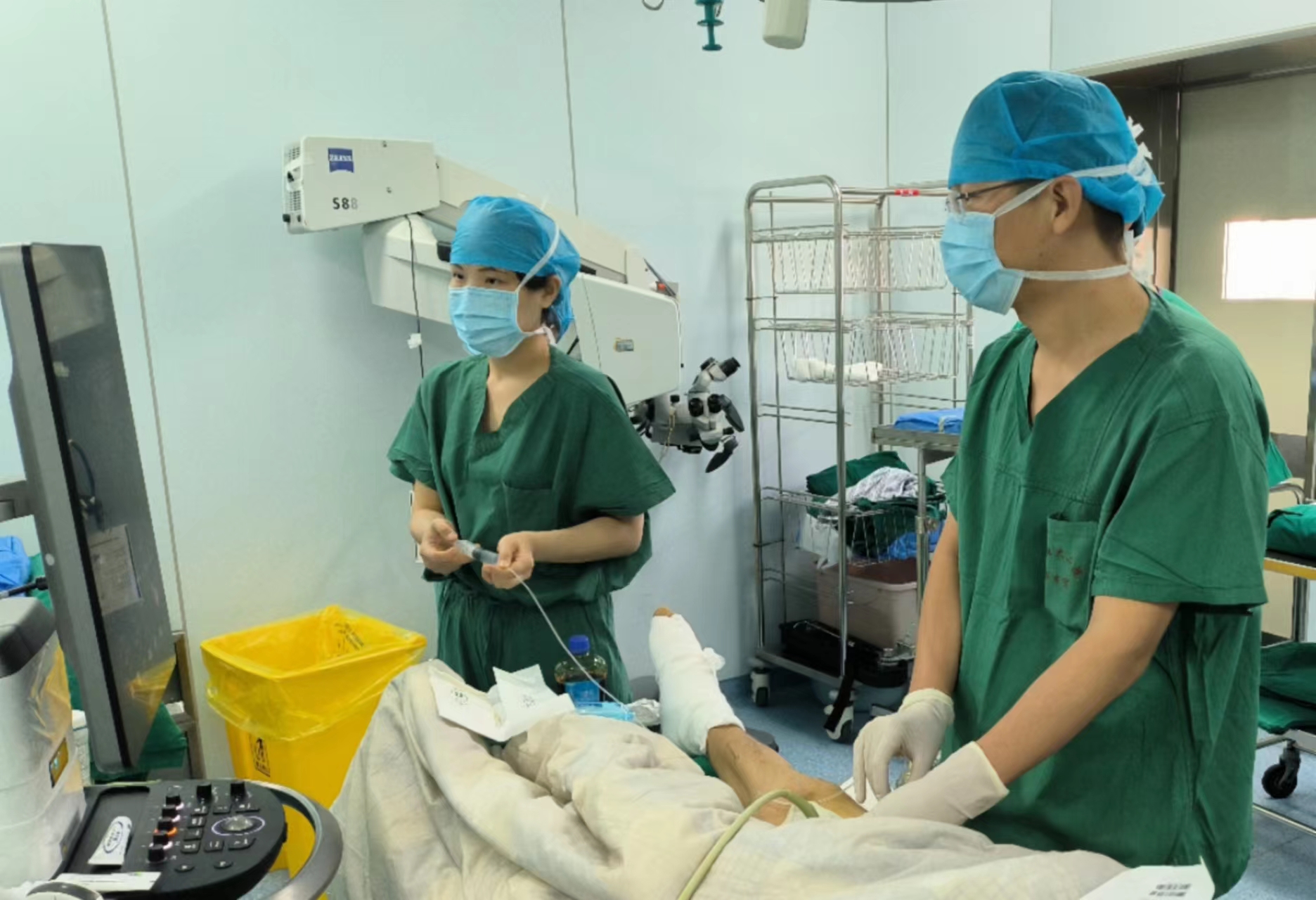 近日,我院麻醉科成功实施超声引导下神经阻滞麻醉为一名患者行急症手术。