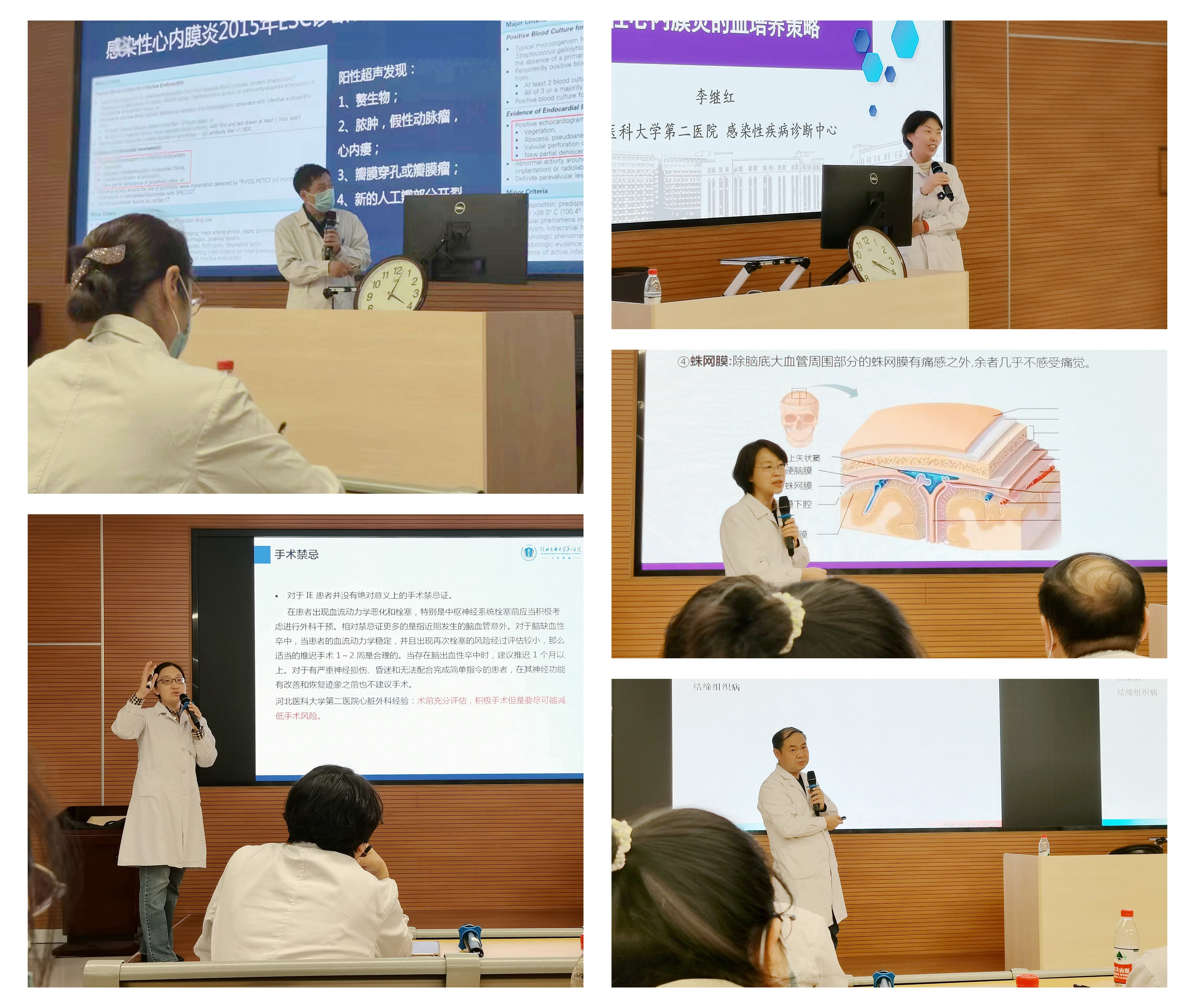 多专业专家对感染性心内膜炎的相关知识分享环节尤为精彩。心脏超声科尹洪宁详细介绍了如何从超声心动图的表现诊断感染性心内膜炎,图文并茂,直观形象。感染性疾病诊断中心李继红讲解了多种不同致病菌引起感染性心内膜炎的临床表现及诊治要点,并详尽说明了如何进行血培养的规范抽取及送检。心脏外科李倩就如何评估外科手术时机、具体方案的制定以及需要注意的事项进行了条理清楚的阐述。神经内科卜晖通过脑脊液二代测序的结果,分析了该患者感染结核性心内膜炎的可能,并强调腰穿是诊断神经系统感染最重要的手段。风湿免疫科彭晨星讲解了分别可以引起下肢血栓、发热、肝功能损伤等情况的常见风湿免疫系统疾病种类,介绍了实验室检测中免疫球蛋白、补体异常的临床意义。