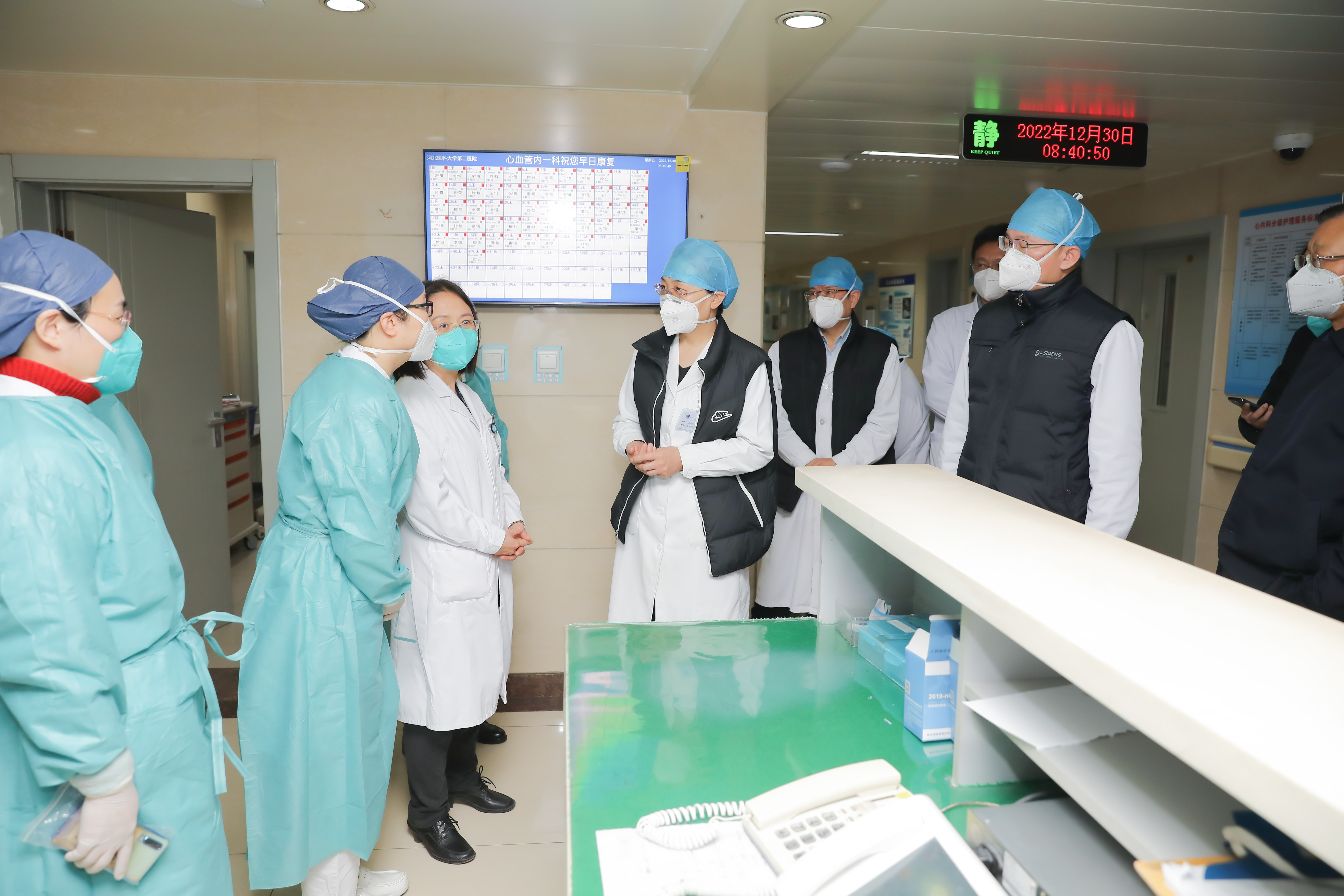12月30日,学校党委常委、副校长,我院党委书记王贵英与全体院领导及相关部门负责人到病区实地查看患者收治,特别是急危重症患者收治情况。