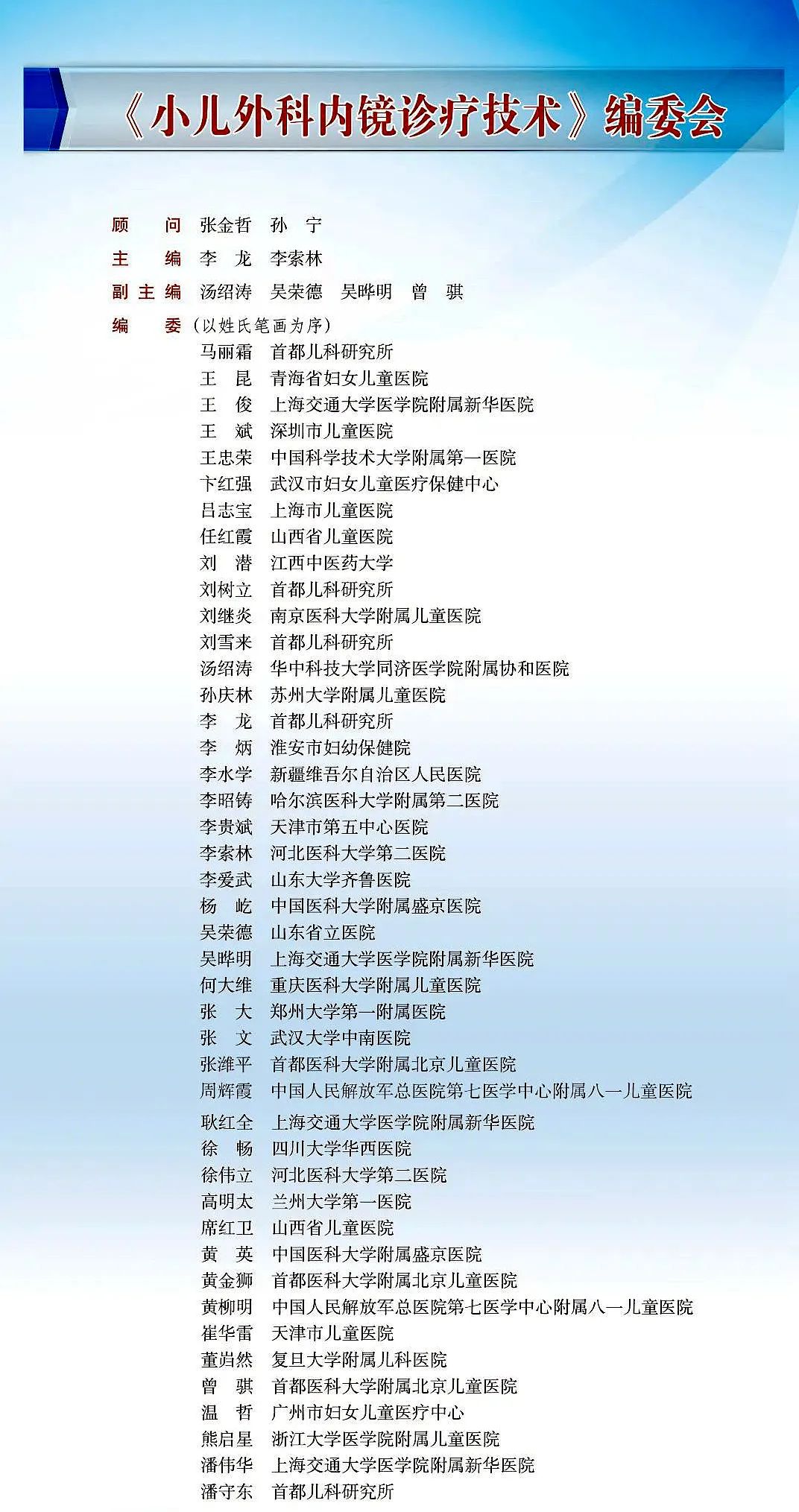 李索林教授主编教材的出版,再次彰显了我院雄厚的综合技术实力,为提升国内小儿外科内镜诊疗技术水平、推进小儿微创外科事业的发展做出了积极贡献。