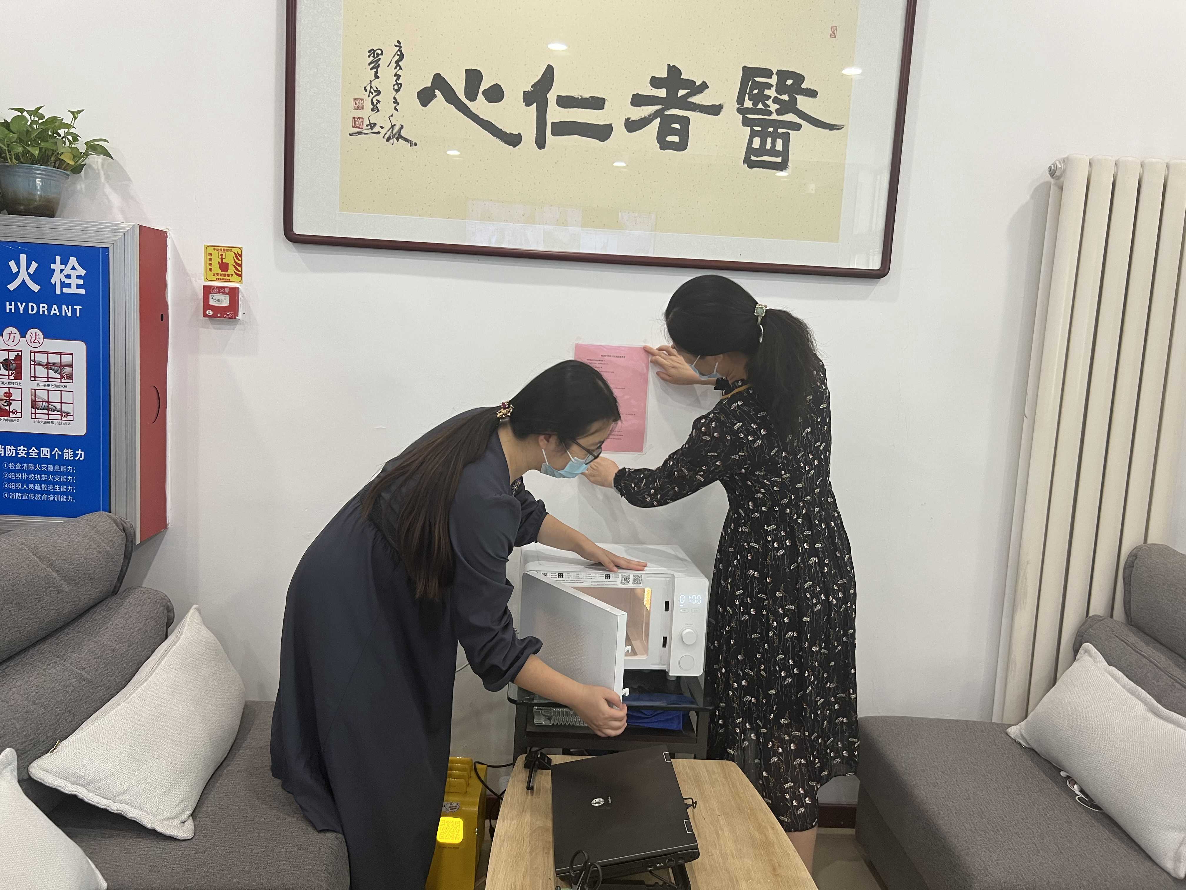 疫情静默期间,100名护理、助产实习学生在九中街天使公寓开展线上实习,为了关照学生的不同需求,提供暖心服务,让公寓内学生安心学习、生活,第八党总支部第一党支部教师共产党员在公寓一楼大厅放置一台崭新的微波炉,为线上实习学生提供方便。同学们称之为“暖心炉”。