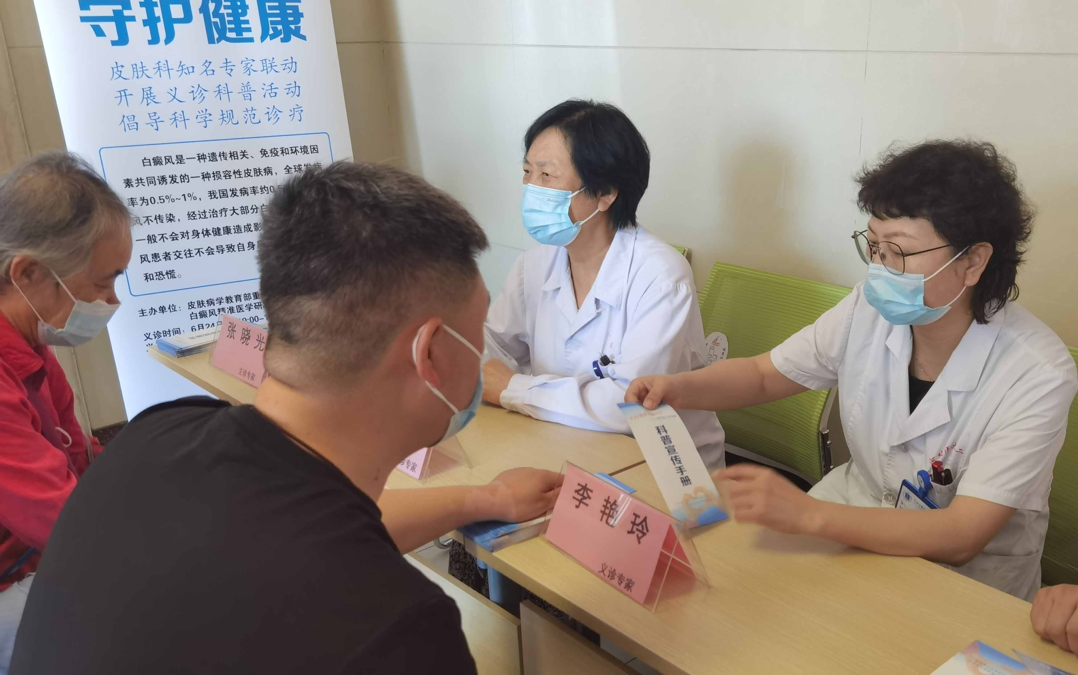 6月25日是世界白癜风日,我院第二党总支第十党支部(皮肤科党支部)于6月24日上午在5号楼3层门诊大厅举行义诊活动。本次活动的主题为“科学祛白,守护健康”,旨在普及白癜风防治知识,给予患者更多关爱,提高患者的生活质量。本次义诊的医疗团队由四荣联教授、李艳玲教授、张晓光副教授、张丽华主治医师及全体党员组成,第二党总支书记赵宪国同志莅临现场指导活动。