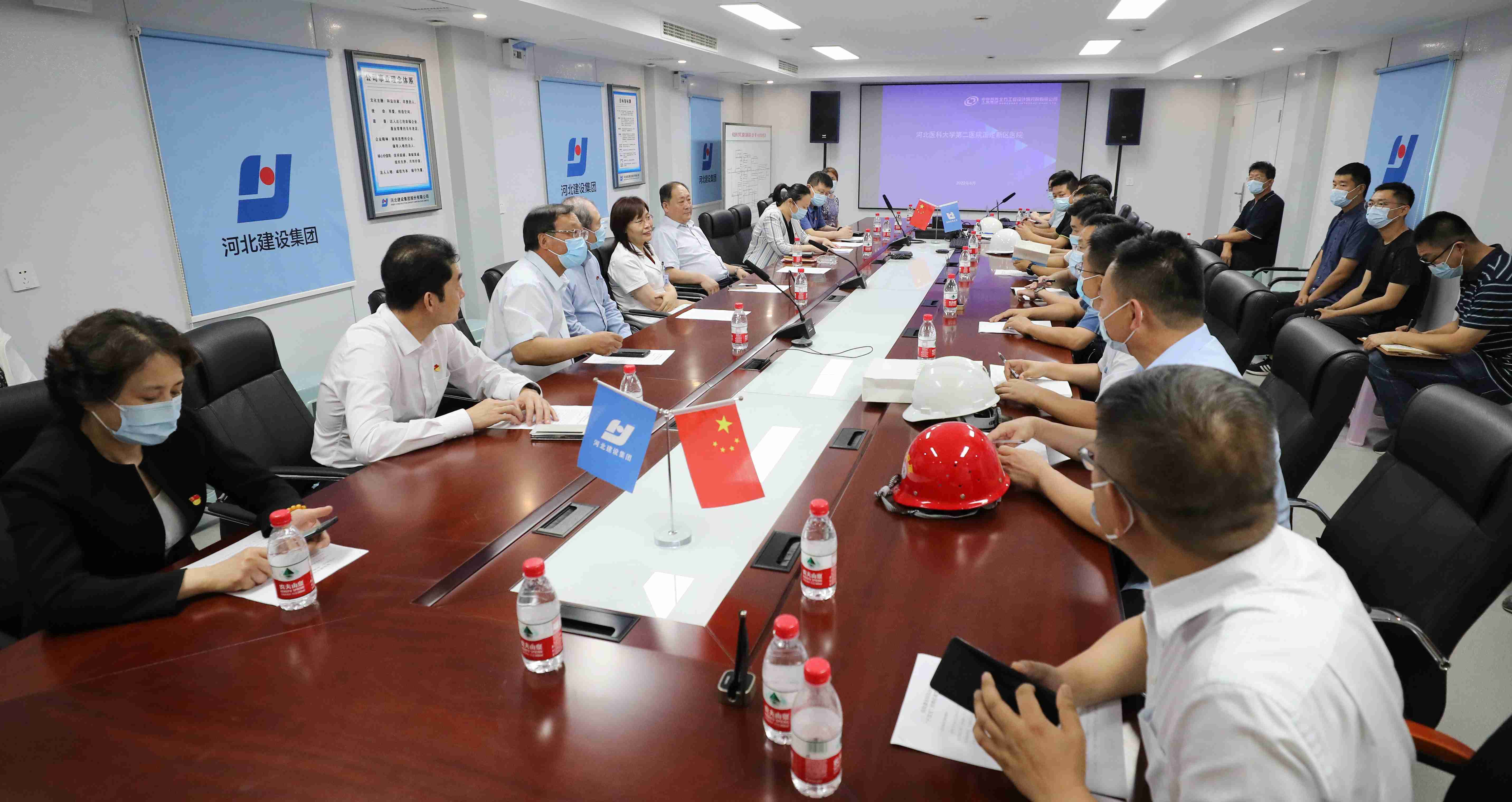在正定新区医院建设现场,王书记一行认真听取了各工地建设负责人的汇报,冒着40度的高温查看施工进展情况。据悉,目前我院正定新区各项目进展顺利,其中重大疫情防控救治基地目前主体封顶,二次结构完成,正在进行安装、装修工程,预计今年12月底竣工;北区一期医疗综合楼桩基已完成;地下已完成50%,主楼今年九月底出正负零,裙楼今年八月底出正负零。2022年底计划施工至主体10层,2023年3月主体封顶;南区科研楼目前主体封顶,二次结构完成,正在进行安装、装修工程,预计今年7月底竣工。