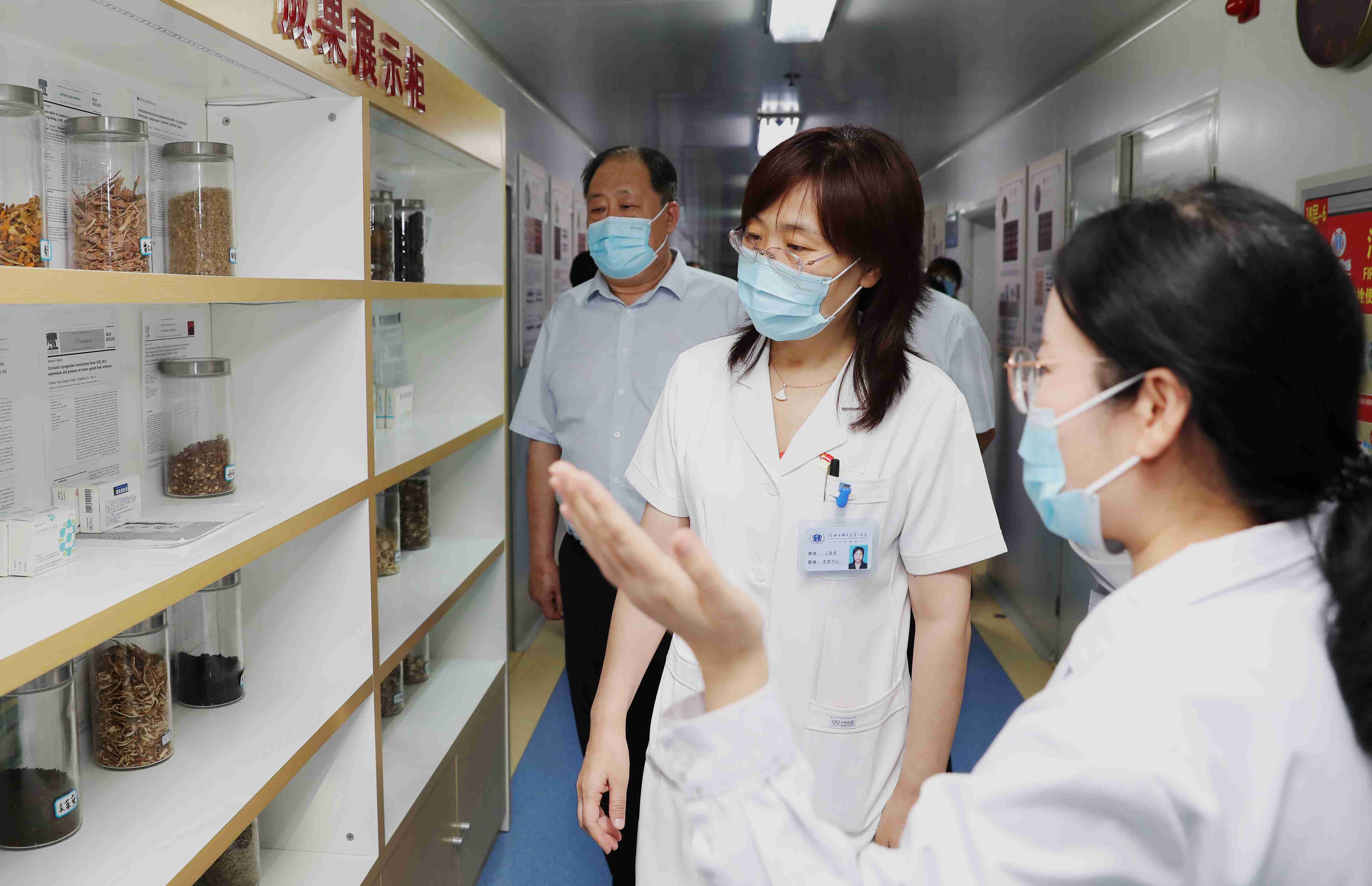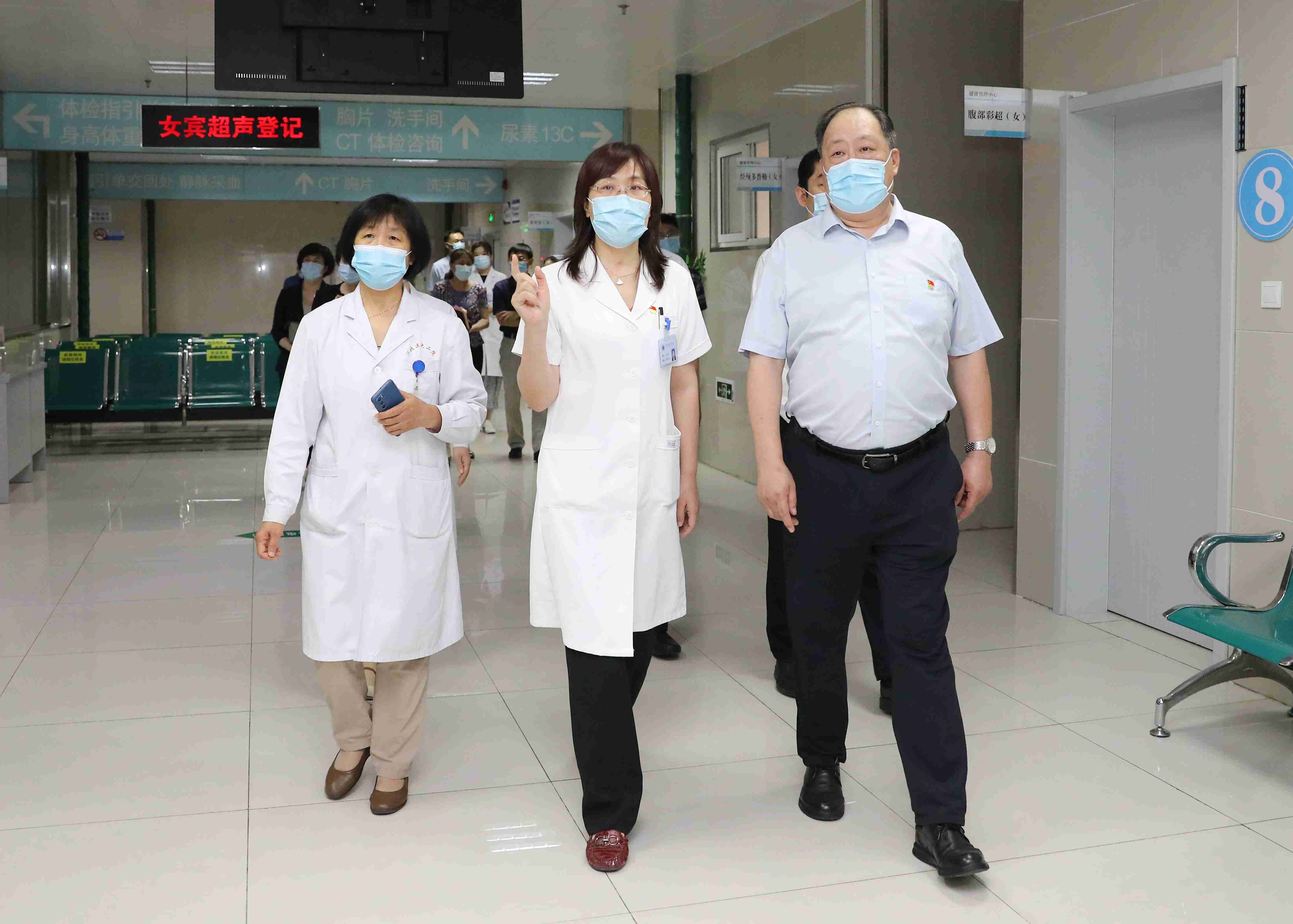在北院区神经内科实验室,王书记查看了实验室文化、环境设施、实验设备等,并现场询问了实验室设备使用和人员配置、科研进展等情况;在体检中心,她巡视了科室环境,咨询了体检项目、设置、设备配备、人员梯队建设等,并对驾驶员体检、人员配备和高质量服务等提出要求。
