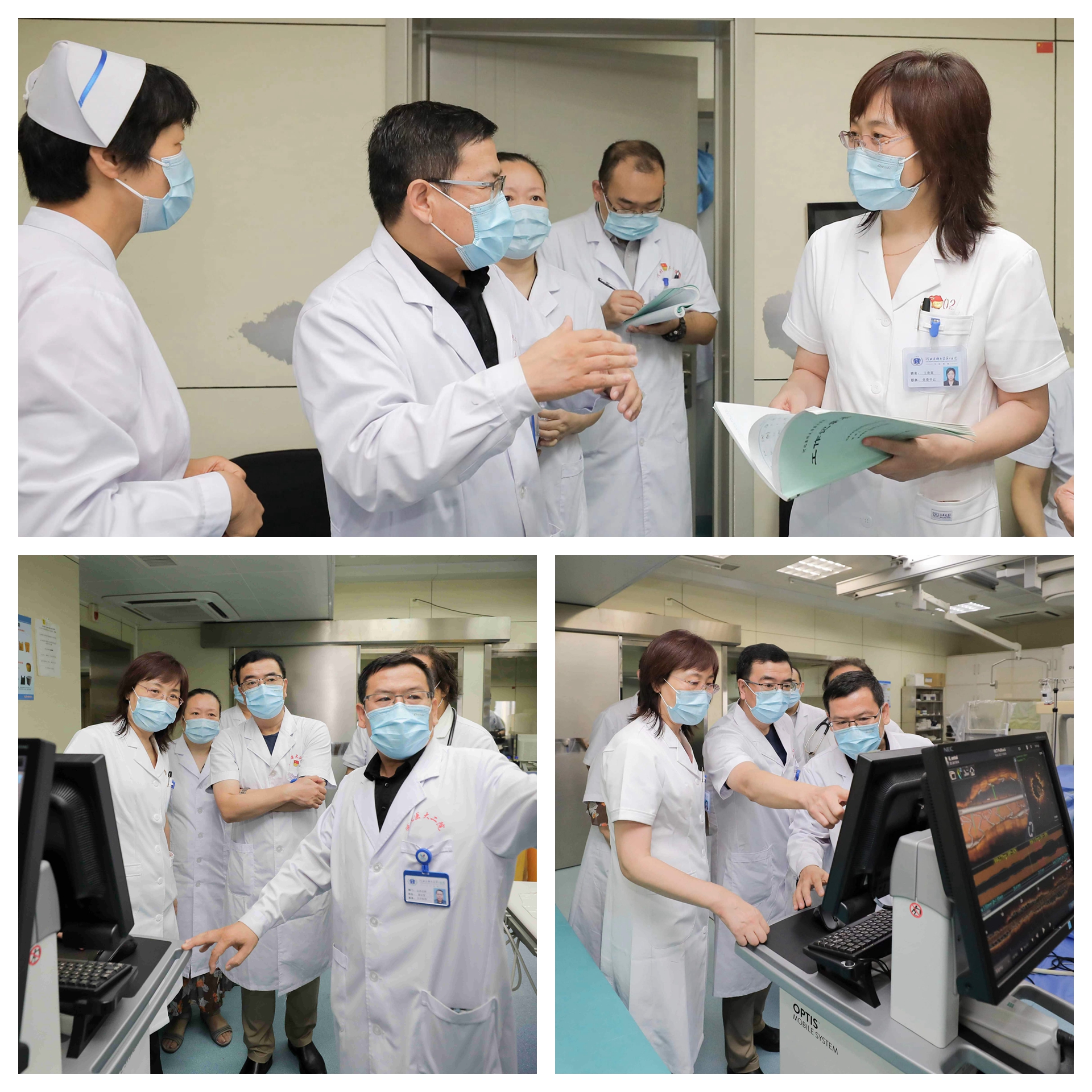 早交班时,院领导了解了心内五科病人情况,听取了傅向华教授关于重点专科、国家区域医疗中心、胸痛中心、学科发展、亚专业设置等方面的建议。王贵英书记表示,在心内五科参加交班,感受到了大家对科室工作、对医生这个职业深沉的爱,正是因为大家热爱二院,才会对医院有着更多的期待,我深有同感。医院正在努力改善科室工作条件,能够立行立改的将马上解决。交班结束后,院领导实地走访了心内五科导管室,查看了科室设备使用情况。