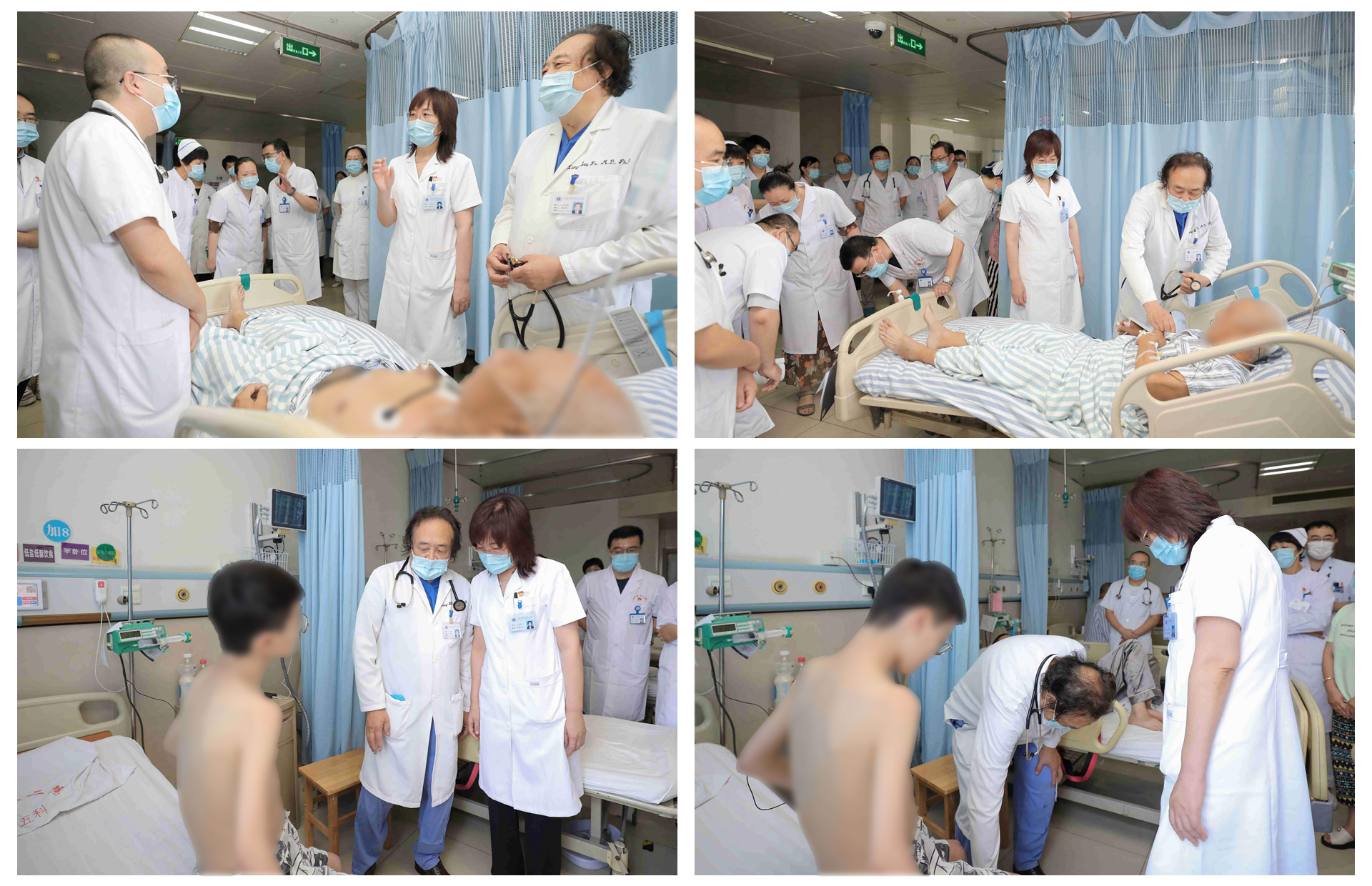 查房时,重12床患者表示自己的母亲30年前就是在这里救治的,选择我院十分放心,感谢医院及时、有效的救治。加8床患者是一位15岁男孩,为疑难复杂心肌病,经我院对症治疗后症状明显改善。在交班和查房的过程中,傅向华教授用英语与王书记、科室医生进行了病情讨论和交流。