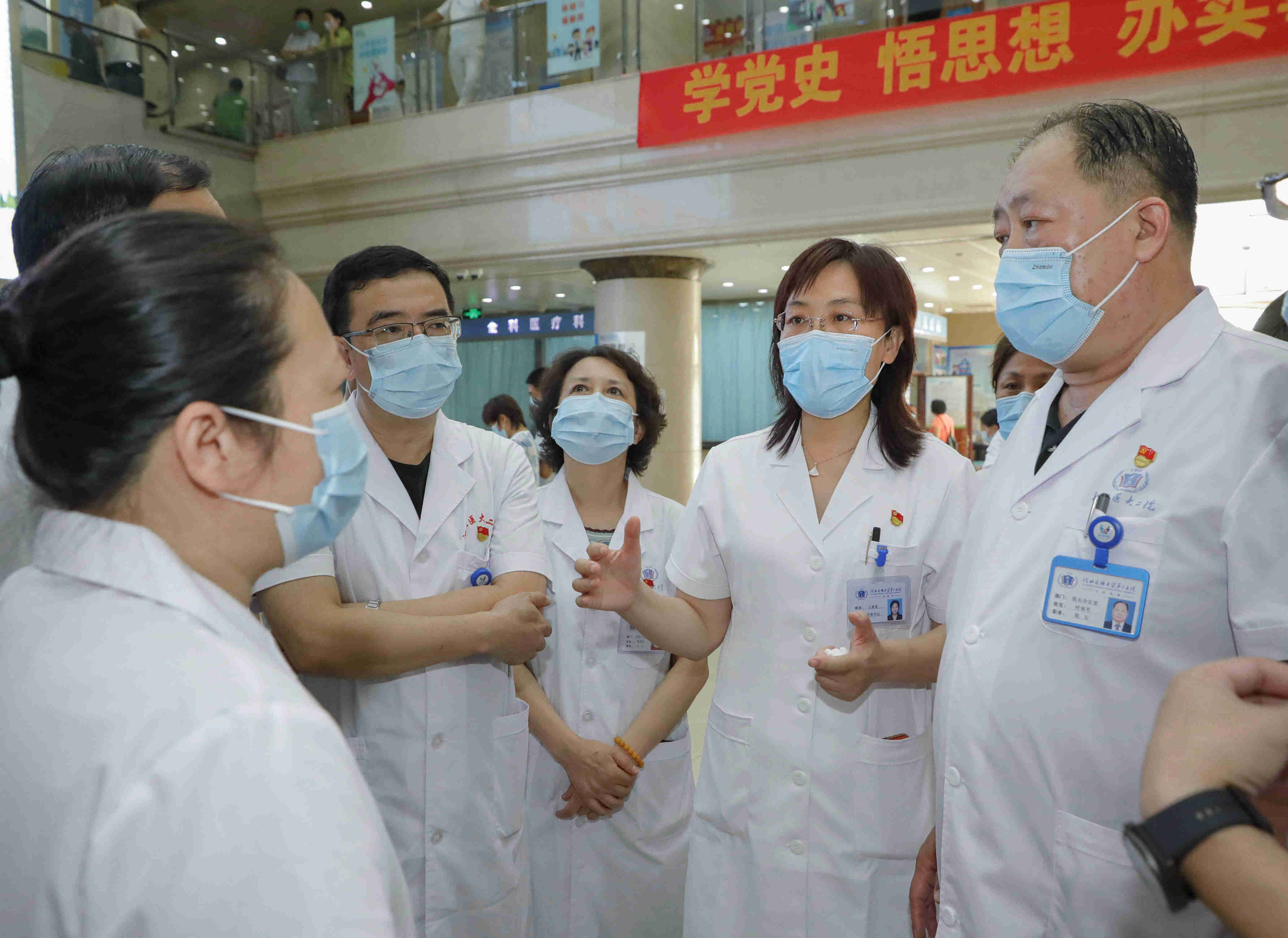 在医院门诊,王贵英书记强调,要规范院内宣传栏、公示栏的制作和海报张贴工作;要建立行之有效的管理机制,由指定部门统一负责,规范审核、制作、安装流程,确保医院各类展板的规范性及美观性,塑造医院的良好形象;要严格管理各类标牌标识的张贴和制作,做到简洁、易懂、醒目、整齐、美观,切实为患者就医提供方便;要确保门诊大厅清洁消杀及环境卫生,保障患者就医安全;不断完善门诊工作人员及志愿者管理工作,展现我院医务人员的良好风貌。
