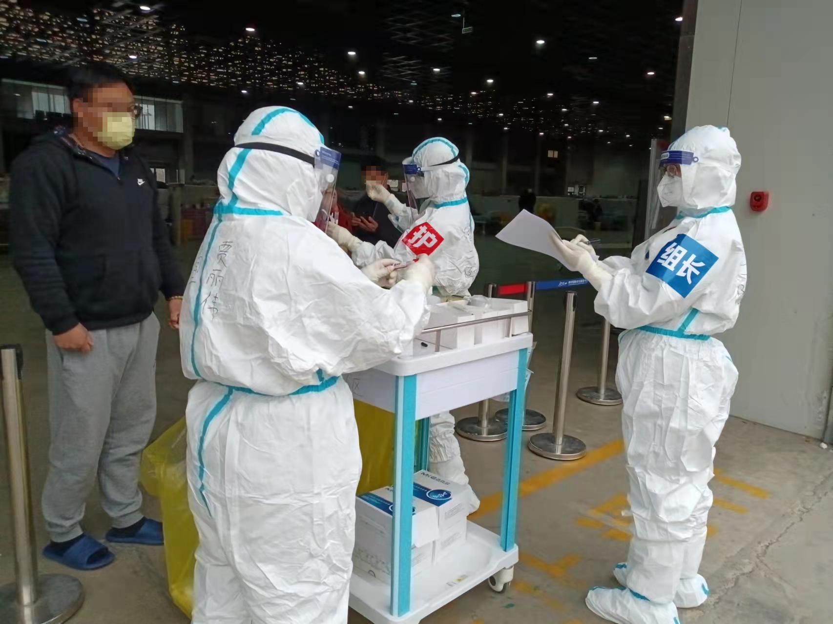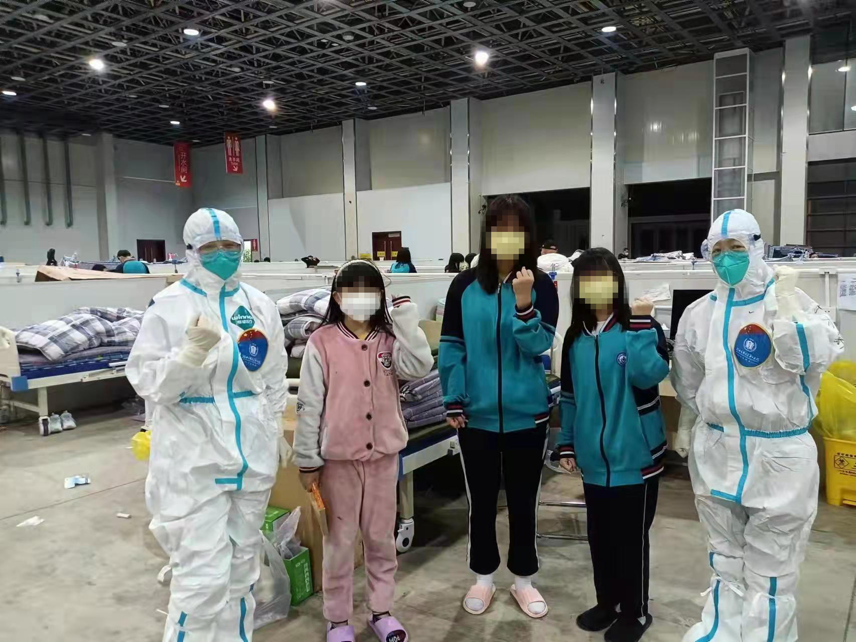 除了李萍护士长,这次出征的还有许多护士长和老师,她们有着多年的护理经验,正因这些“老”老师做出表率,在方舱护理工作中出谋划策,我们才能迅速展开护理工作并取得显著成效。舱内工作多而琐碎,舱内多数是无症状及轻症病人,肝胆外科许志娟老师充分评估患者情况后,积极与患者沟通,询问意愿,组建了第一批病区志愿者,更好的了解并解决了患者的实际困难,而且提高了工作效率,大大降低了院感风险;急诊科高梦颖老师,发挥自己的专业特长,从连接线路、安装电池到调试、备用,保障了舱内急救设备正常运转;核酸采集是舱内护理工作重要的一项,呼吸科的刘桂森老师主动组织大家进行学习,并对流程进行规范,保证采集的规范和护理人员的有效防护;妇科的刘淳老师,勇于担当,毫不计较,不仅精心指导技术,在队员情绪有波动时主动给予包揽疏导,减轻压力。身心医学的李铃干活利索,善于沟通,看到孩子们喜欢聚集,为了防止交叉感染,她组织孩子参与志愿者活动,帮助分发口罩、收拾垃圾等,并在活动后给予玩具、牛奶等奖励,深得孩子们的喜爱;侯冬藏老师工作中积极热心,主动承担患者正确佩戴口罩等健康宣教工作,并担任运动教练,带领患者在舱外进行健走行动,强身健体,放松身心。