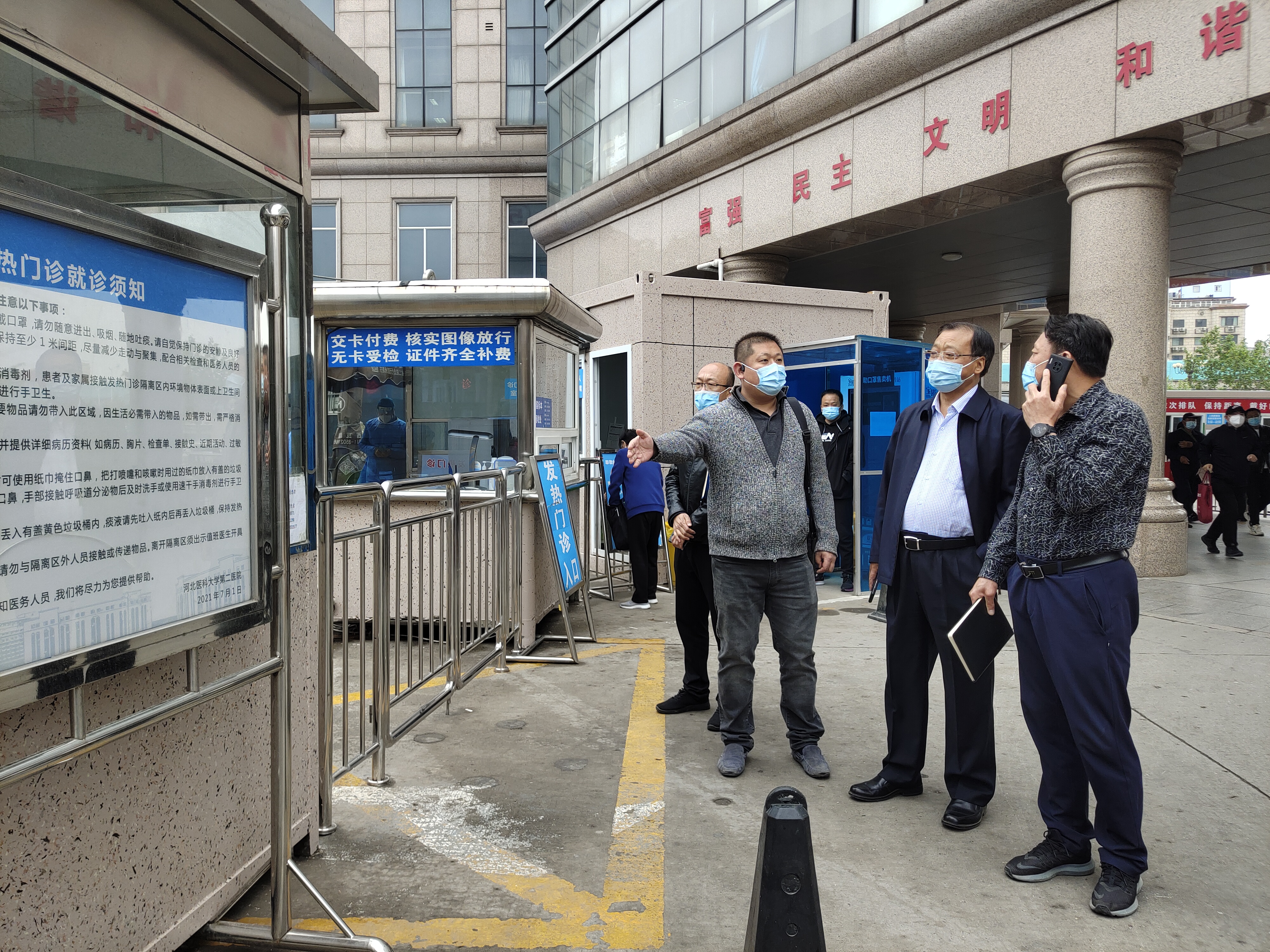 在发热门诊隔离病房,陈院长查看新装电梯运行情况、疫情防控工作情况,对于发现的问题和隐患,现场商定了整改方案,责成相关部门抓紧落实整改,确保抗疫一线科室安全有序开展工作。