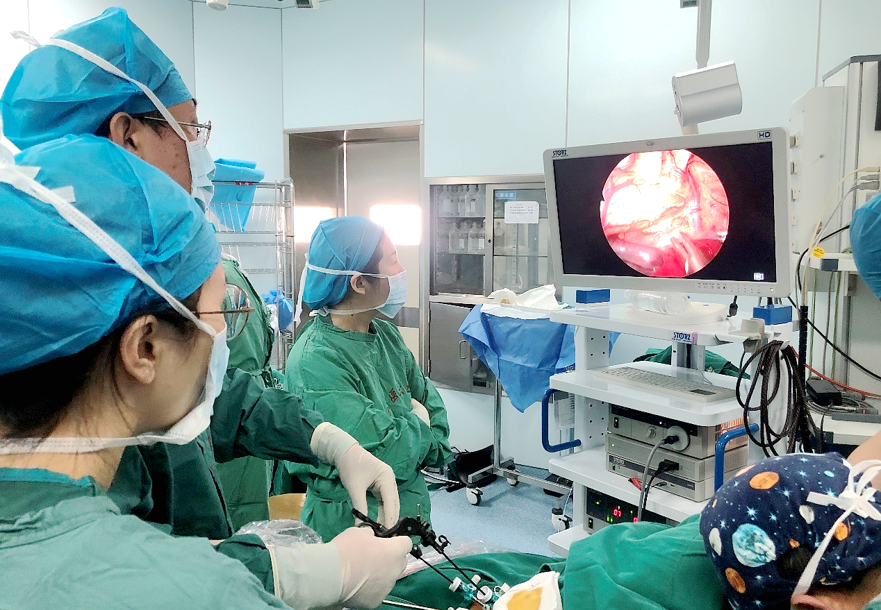 据小儿外科主任、博士生导师李索林教授介绍,我院小儿外科已开展腔镜微创外科手术80余种,微创技术水平居国内领先水平,多种复杂手术如腹腔镜辅助高位肛门闭锁Ⅰ期成形术、胆总管囊肿根治手术、严重膈疝修补术、食道闭锁手术、巨结肠切除术、胸腹腔肿瘤切除手术、新生儿十二指肠梗阻手术、经脐单切口腹腔镜手术等均已开展且成熟,为燕赵大地儿童的健康提供了坚实的医疗保障。