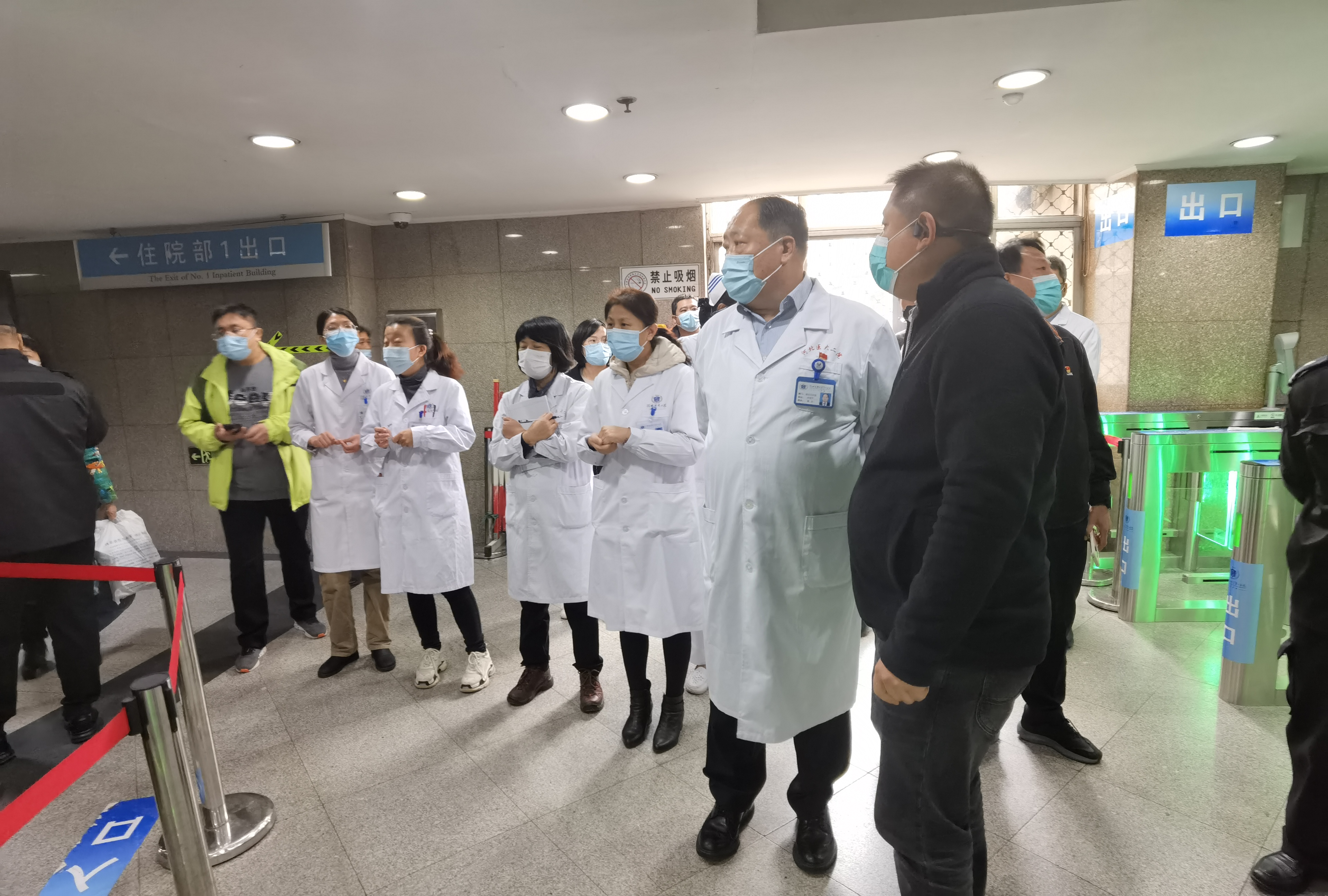 时院长一行先后到一号住院楼、急诊楼、发热门诊、核酸采集点、门诊楼等重点部位,通过现场查看、实地访谈、查阅资料等方式,对我院病区门禁管理、体温筛查、应急隔离室设置、出入病区人员管控、“一患一陪护”、医务人员值班等情况进行了检查和现场督导。