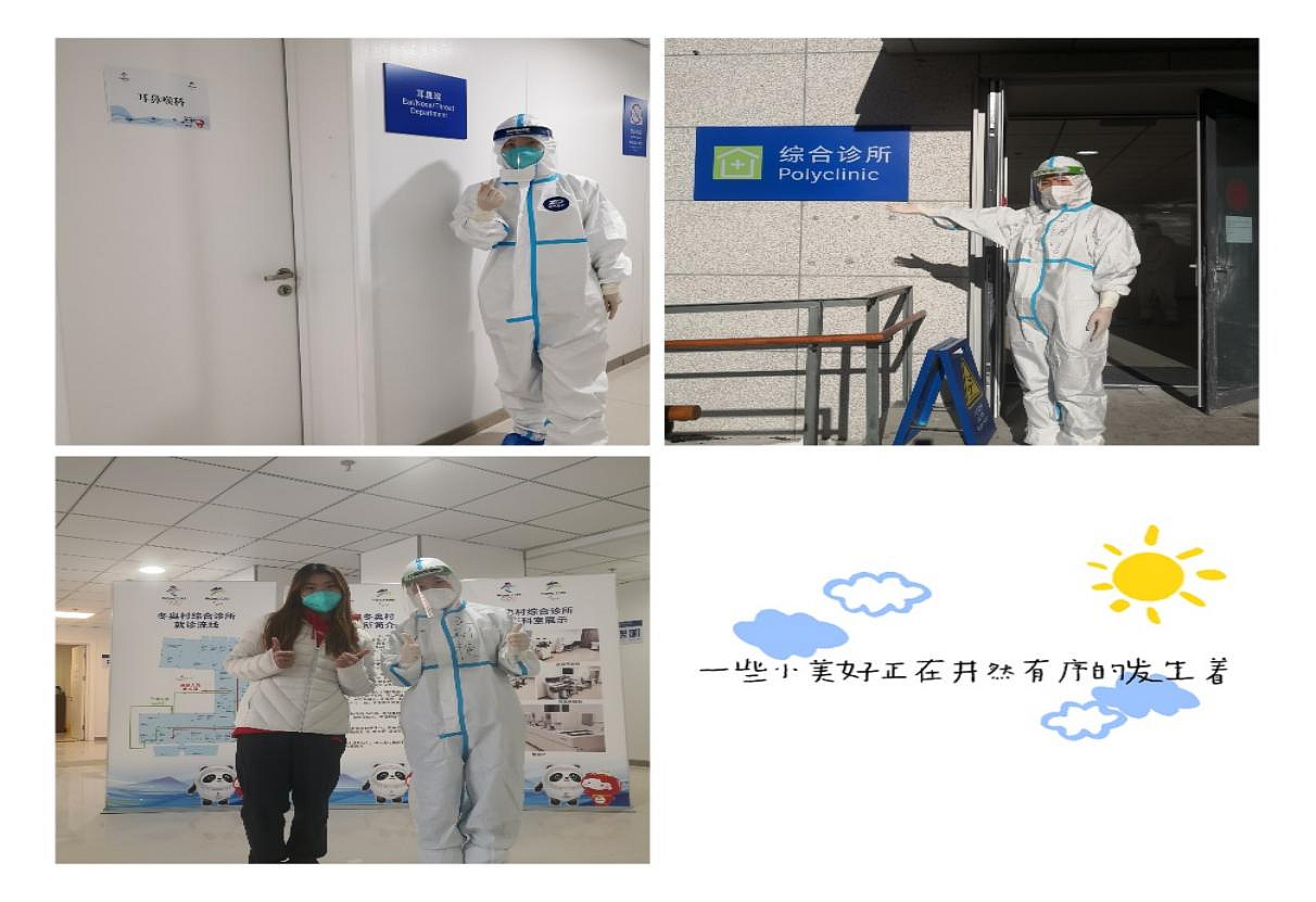 作为管理组一员,亲历了综合诊所开诊前的紧张忙碌、开诊后的平稳有序;感受到了综合诊所大家庭的团结友爱;见证了护理团队兄弟姐妹们的付出、奉献、担当、敬业;收获了感动、友谊、成长、进步。来自医院领导、同事、家人、朋友的关心、问候、支持,给了我们无尽的温暖与力量。请祖国放心,冬奥有我们,一定圆满完成保障任务!