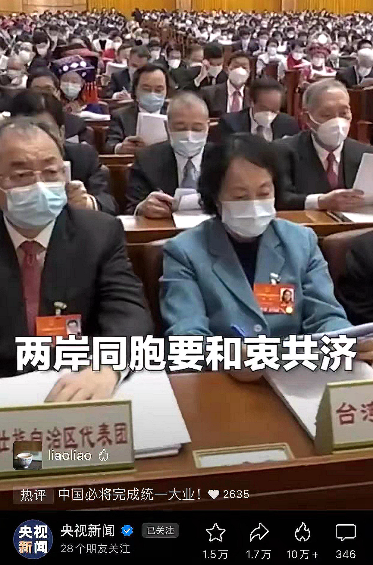 台湾代表团传达台胞声音。廖海鹰表示,在代表积极提出建议,以及相关部门高效回应与大力支持下,台胞在大陆的求学、就业、工作中,已经日益感到便利。“过去购买高铁车票不便,有关部门根据台湾团的建议进行了调整。我们有责任去体察他们的生活,转达他们的声音。”
