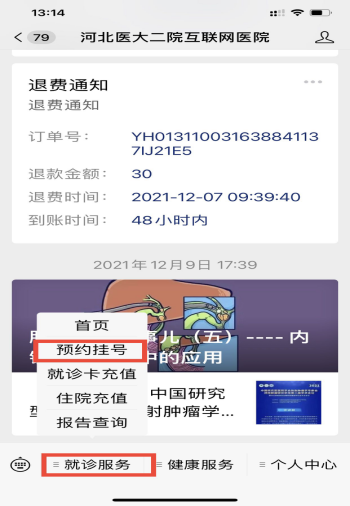 1.微信扫描下方二维码或关注“河北医大二院互联网医院”公众号;