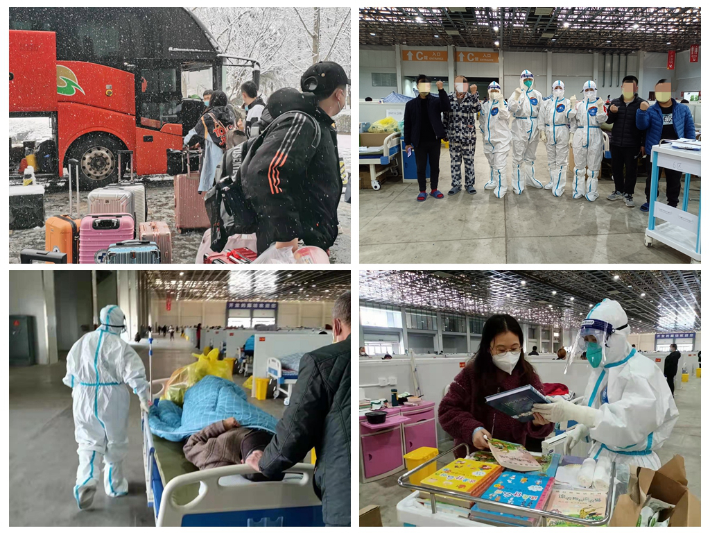 第一批医疗队到达廊坊后,各队员顾不上旅途的劳顿,迅速完成物资的分发、熟悉方舱现场环境、练习穿脱防护服等工作。3月19日凌晨,第一批次医护人员入舱,接管6病区,开展患者信息录入、病历资料收集、危重患者摸排、物资及药品的申请等一系列工作。六病区的患者不乏体弱多病的老年人、聋哑人、智力障碍患者和大量的学生。走访患者时,既要详细了解患者既往病史,又要十分注意患者的心理问题,保证每一位患者的安全,对有情绪问题的患者及时进行心理疏导和抚慰。21日凌晨5点第二批医疗队到达支援6病区工作。大家相互配合,合力完成各项医疗救治工作,早日清零。
