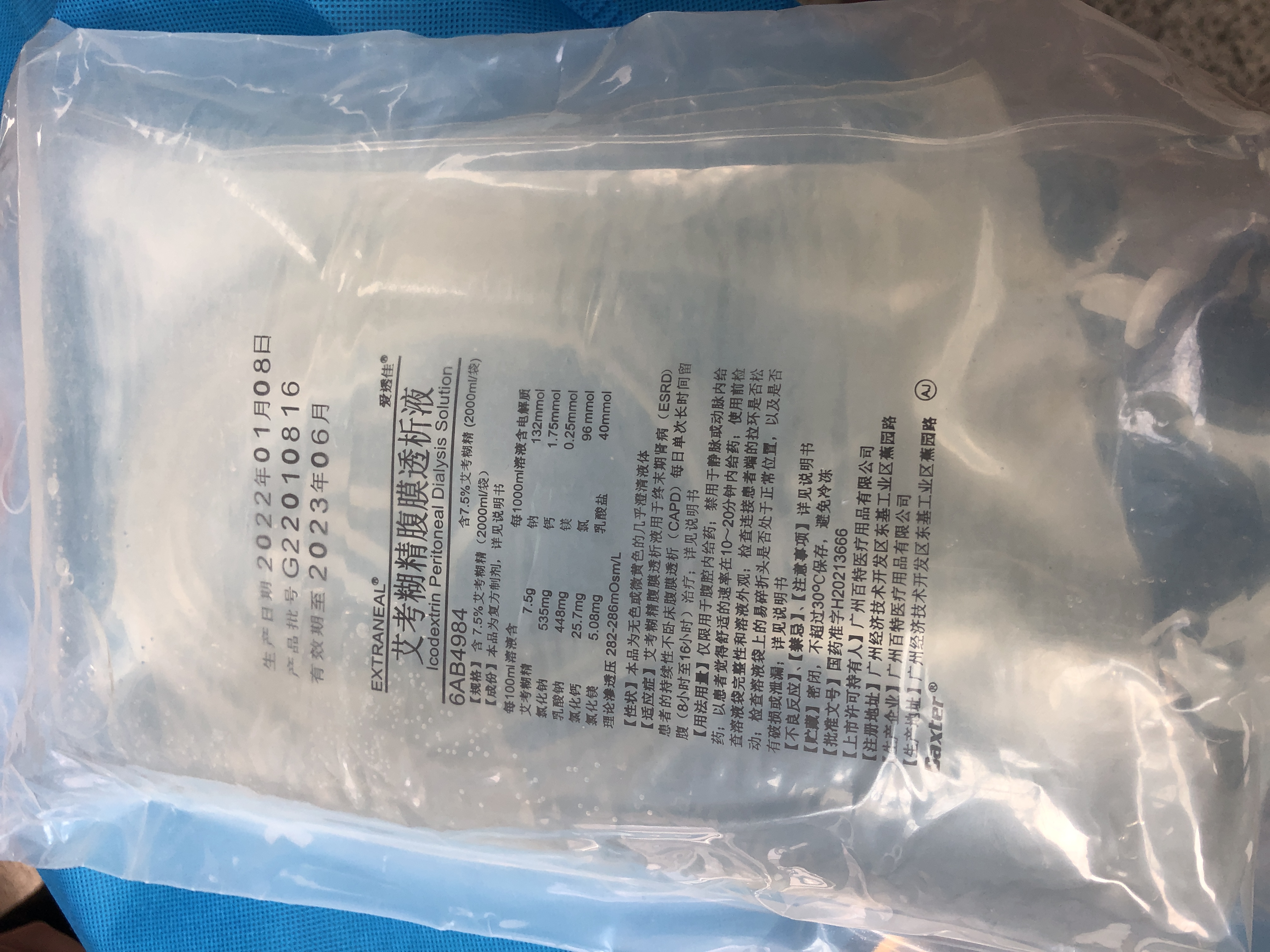 今年3月,艾考糊精腹膜透析液在中国的获批上市,打破了三十年来中国缺乏新型腹透液的状态,为中国腹透患者带来了新的治疗选择。3月23日,艾考糊精腹膜透析液进入河北市场,肾内科腹膜透析中心医护团队第一时间将好消息通知有需求的肾友们,并开出了首张艾考糊精腹膜透析液处方,送药到家,使他们在第一时间用上了艾考糊精腹膜透析液。收到第一张处方的腹透患者,透析龄93个月,无尿,腹膜透析超滤量对他来说显得尤为重要,目前他应用传统2.5%葡萄糖腹透液4袋,4.25%葡萄糖透析液1袋,超滤200ml/天左右,出现水肿,高血压等,严重影响生活质量, 3月25日,接到患者的反馈电话,他激动表示每日应用1袋艾考糊精腹膜透析液,留腹9小时,每日透析超滤量较前增加约900ml,体重较前日下降0.8kg。