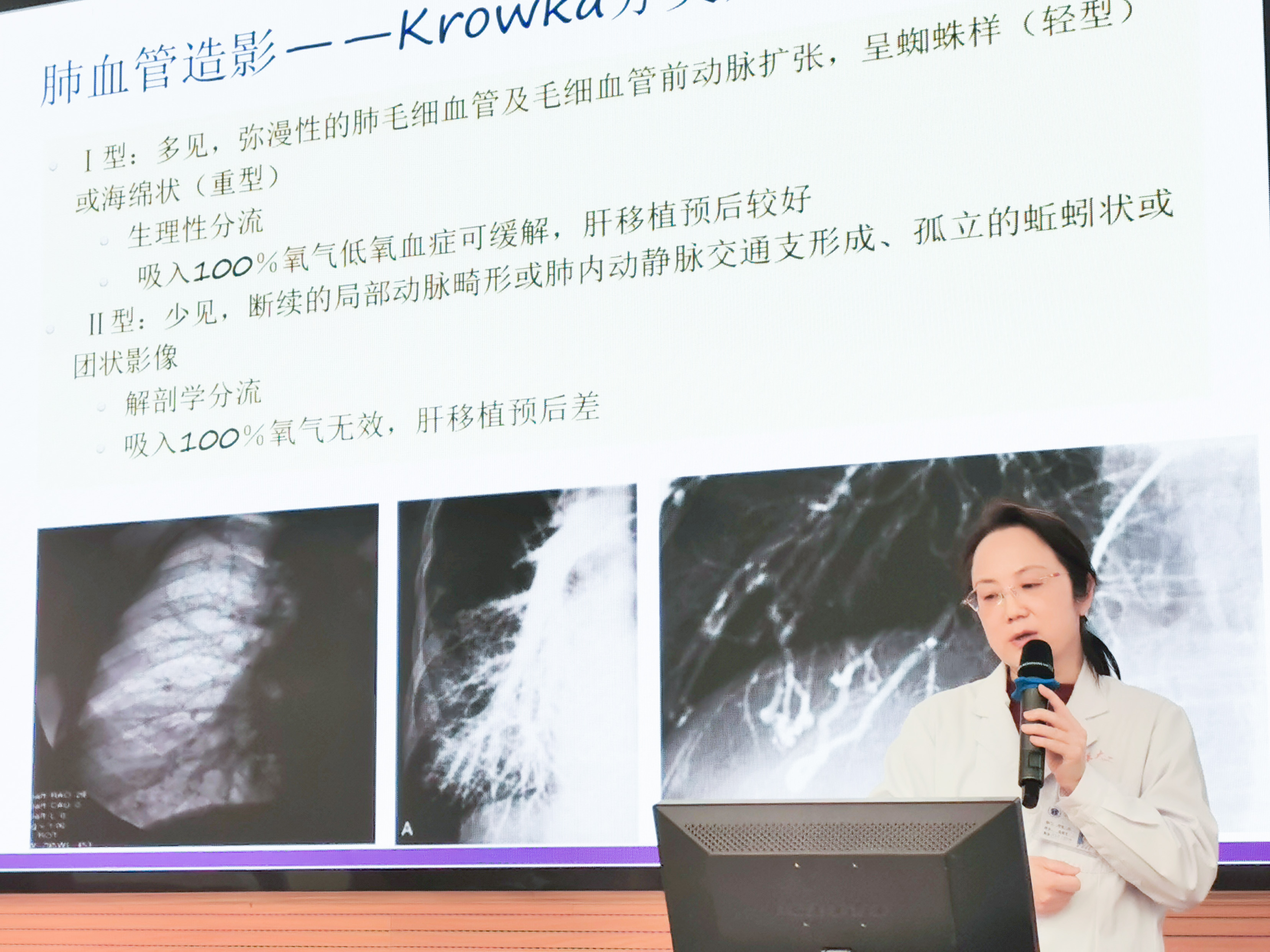 特邀专家发言后大内科主任袁雅冬教授从呼吸专业角度对肝硬化门脉高压患者常常被忽视的肝肺综合征,门脉性肺动脉高压如何检查及进一步诊断做了深入讲解,让大家提高疾病诊断意识,受益匪浅。