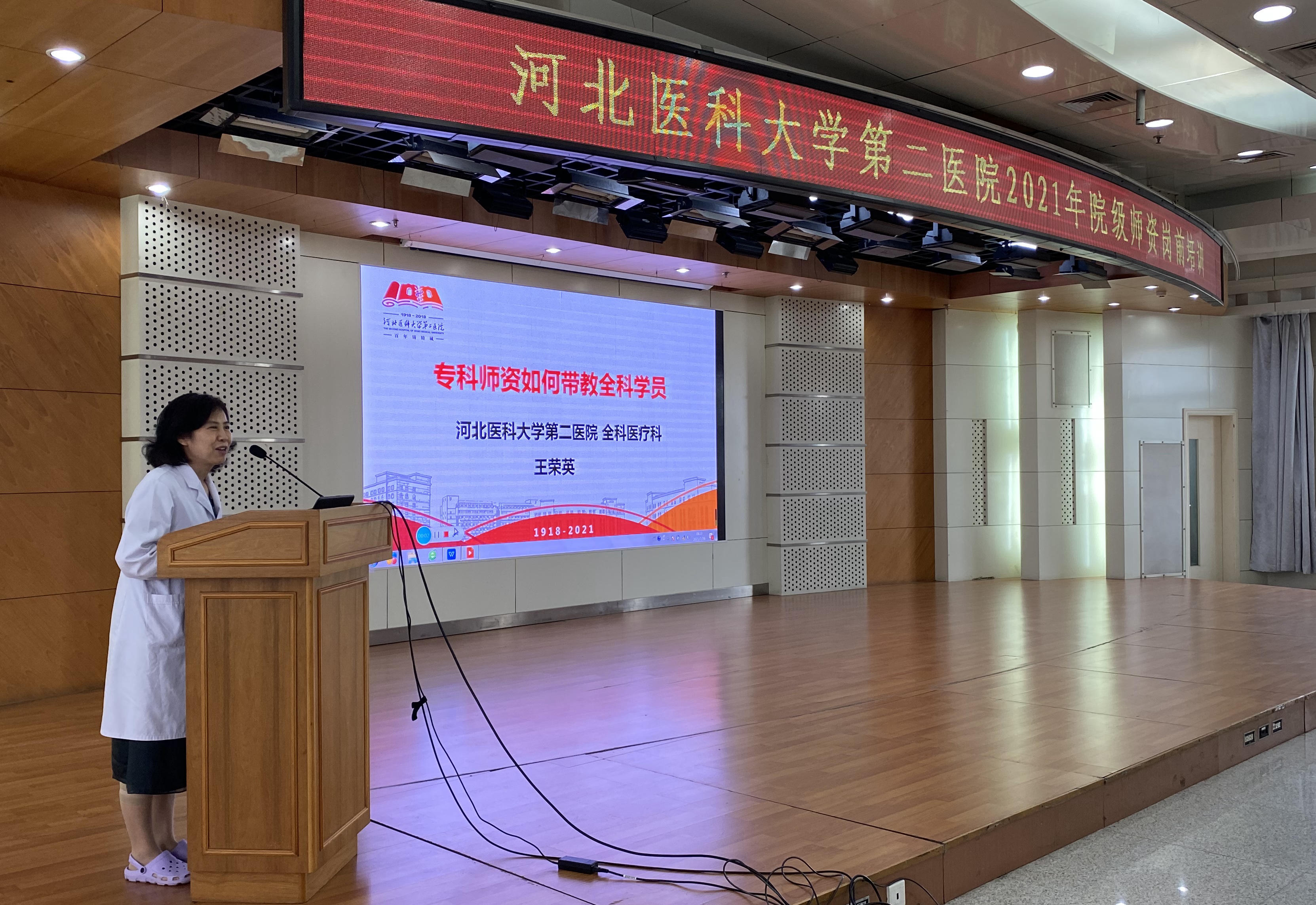 本次培训班以解读各项住院医师规范化培训相关指标和要求,提升师资带教能力,规范日常教学活动为主要目标。内科基地教学主任郝咏梅教授以住培各专业基地评估指标为依托,就指标对应的具体教学工作内涵和要求进行了讲解;对基地及科室各级师资职责、日常带教工作标准与内容、住培管理制度要求、教学活动管理制度等方面进行了对标和解析;并对教学查房的最新要求和标准流程倾囊相授,从教学查房的内容、形式、目的、意义,到教学查房的准备、过程和常见问题等各环节的要求与注意事项做了细致的讲解。全科基地负责人王荣英教授对专科师资如何带教全科学员进行了分享,从全科医师培养的重要性、全科与专科医师的区别、全科医生培养途径、全科医生在综合医院定位,以及全科培训内容和要求等进行了全面介绍。精心的授课内容,深入浅出的讲解,专家们的传授得到了在座培训人员的一致好评,学员学习热情饱满并表示收获颇丰。培训结束后,还对全体参训人员进行了考核,考核合格者将颁发河北医科大学第二医院住院医师规范化培训师资合格证。