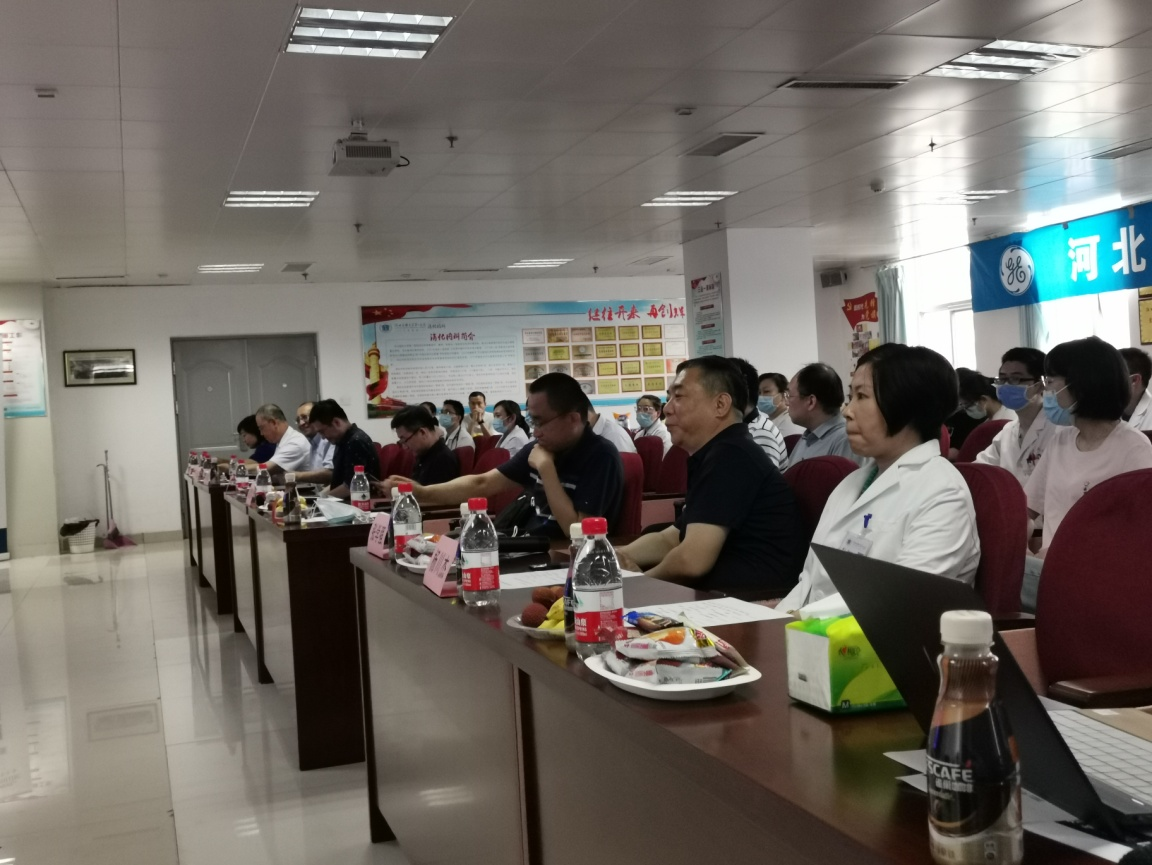 首都医科大学附属朝阳医院介入科王剑锋教授、中国医学科学院肿瘤医院介入科闫东教授、首都医科大学附属北京友谊医院介入科魏建教授、我院消化内科主任医师张学强教授分别做了《内脏动脉瘤的介入治疗》、《消化道肿瘤的介入治疗进展》、《梗阻性黄疸的PTBD引流和内照射治疗》和《TIPS指南解读和临床应用进展》的学术报告。河北医科大学第一医院血管外科张磊教授、我院肝胆外科边伟教授、消化内科蒋树林教授、杨川杰教授以及王娜教授等参加了讨论。现场气氛热烈,不同专业专家围绕消化系统疾病介入相关问题进行探讨,来自全省各地50余人参加了会议。