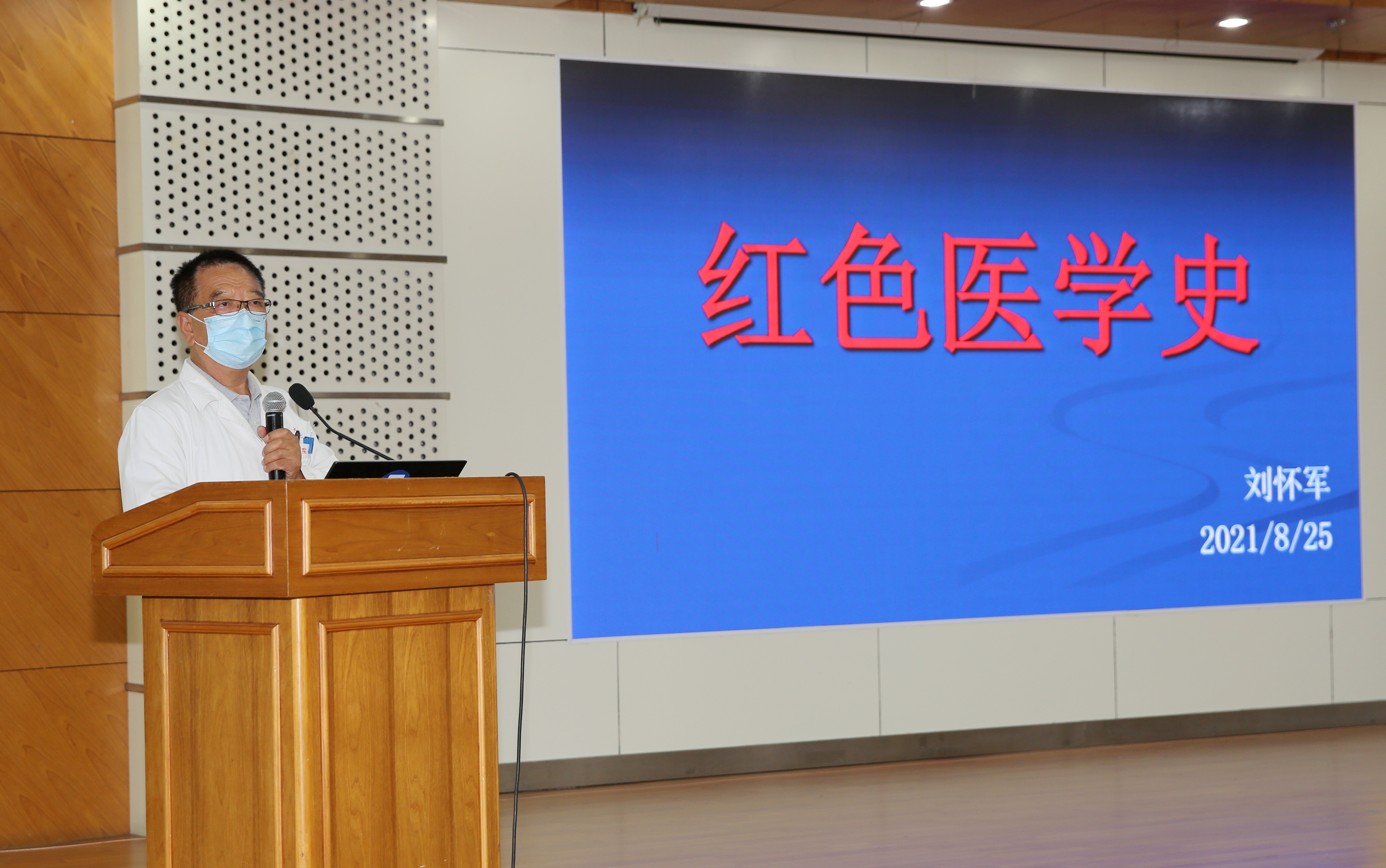 为深入开展党史学习教育,按照医院党委《党史学习教育专题学习方案》的学习安排,8月25日,我院在图书馆三层会议室组织召开《红色医学史》党史党课。此次党史党课特别邀请到我院老党员、德高望重的刘怀军教授结合丰富详实的珍贵历史图片、照片为同志们讲述中国共产党领导下的红色医学史与我院的红色院史。医院院领导,党委委员,科级干部,党支部书记,正科主任、正护士长以及主持工作的副主任、副护士长到场聆听。会议由党委副书记、纪委书记乔治斌主持。本次党史党课采取线上线下形式,直播吸引了1.15万人次在线观看。