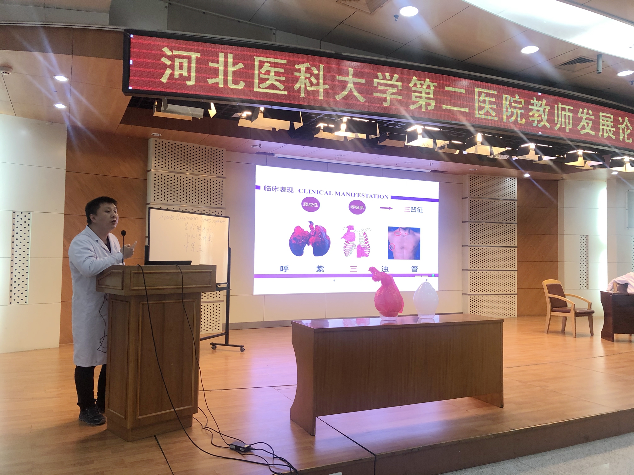 3月25日下午,教务处在图书馆三楼成功举办教师发展论坛第二期《锵锵三人行》,邀请血管外科、第八届全国高等医学院校青年教师基本功比赛二等奖获得者高翔老师,呼吸一科、第八届全国高等医学院校青年教师基本功比赛二等奖获得者徐海博老师和16级儿硕班班长、全国生长发育专业医师科普大赛河北省第一名获得者邢雨彤同学同台展示,教学督导组、心血管内科专家郝玉明教授现场点评,为150余名教师带来一堂别开生面的示范课。本次活动由教务处副处长郑雅梅主持。
