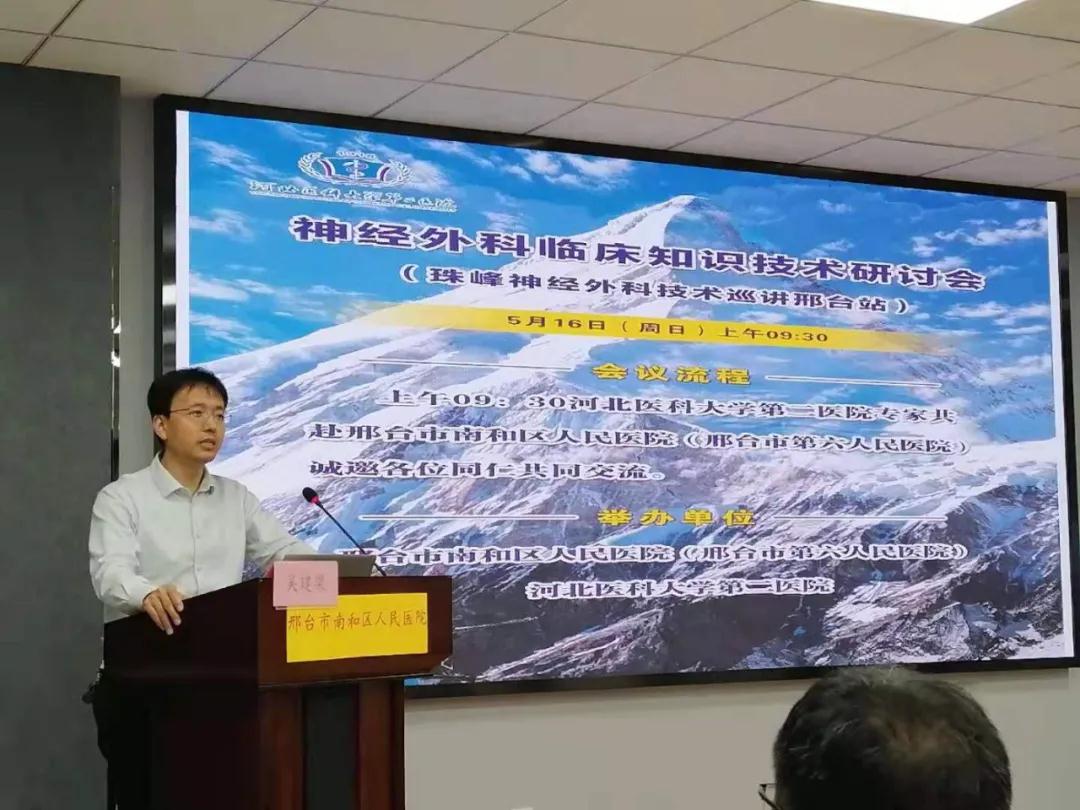 我院东院区神经外科党支部专家团于2021年5月17日奔赴河北省邢台市南和区,开展“不忘初心,服务基层”纪念建党百年系列活动。活动通过与邢台市南和区人民医院进行技术对接,就群众关心的健康问题及基层医院急需开展的项目和技术难点深入进行了交流,切实为群众办实事,以实际行动庆祝中国共产党成立一百周年。