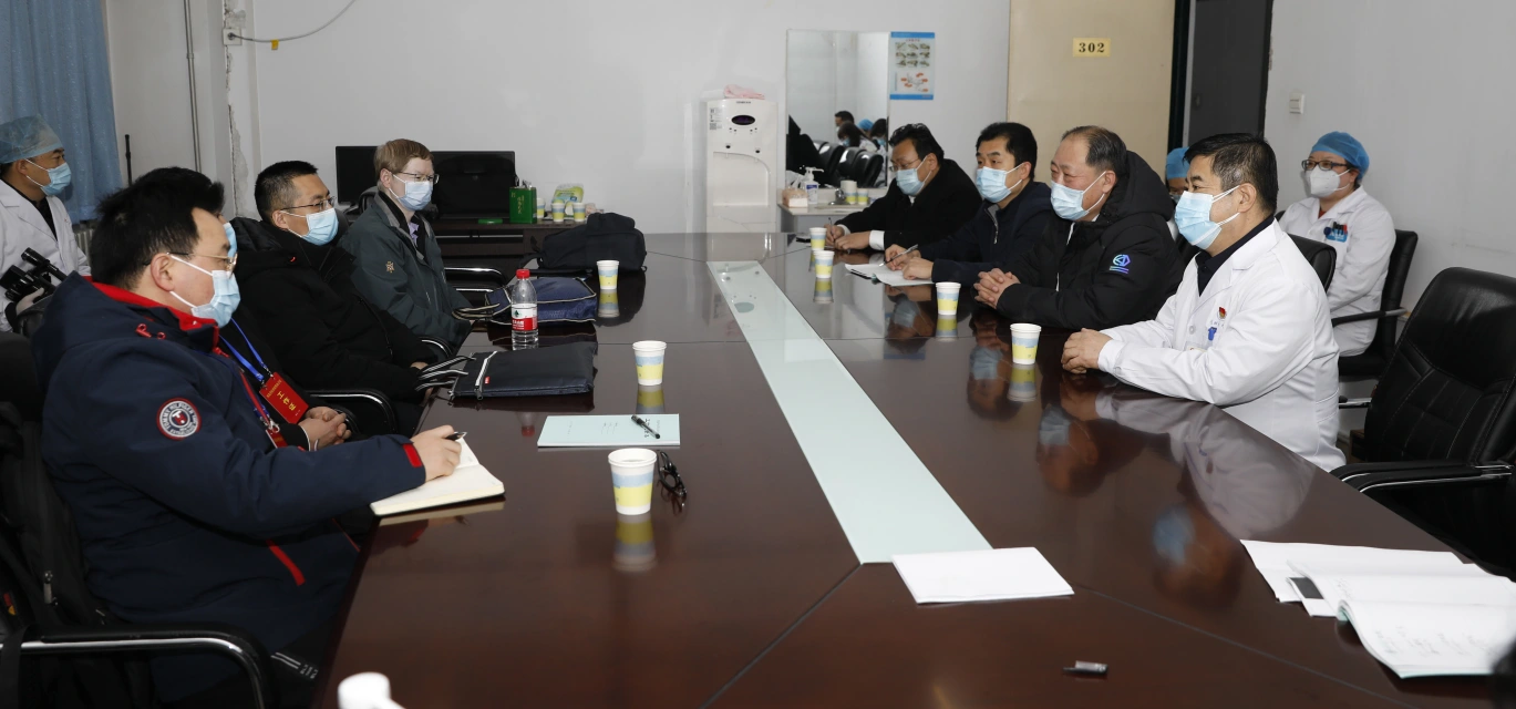 为确保转运患者顺利接收,救治过程无缝链接。在1月12日上午召开的新冠疫情防控工作例会上,党委书记张万生强调,这既是对我院医疗救治能力和应急能力的检验,更是对各级党组织和党员干部责任与担当的重要考验。他要求,全院各级党组织和广大党员要树立强烈的政治责任感,提高政治站位,充分认识工作的紧迫性、艰巨性和重要性,继续发扬抗疫精神和医院精神,坚决贯彻上级疫情防控工作部署,刻不容缓推进落实,让党旗在抗疫一线高高飘扬。会议对患者转运接收的各个环节进行了充分讨论并提出具体实施举措,制定了详细方案并及时调配了充足的物资。会后,党委副书记、院长时保军,副院长瞿长宝带领相关科室到东院区现场督导指挥。