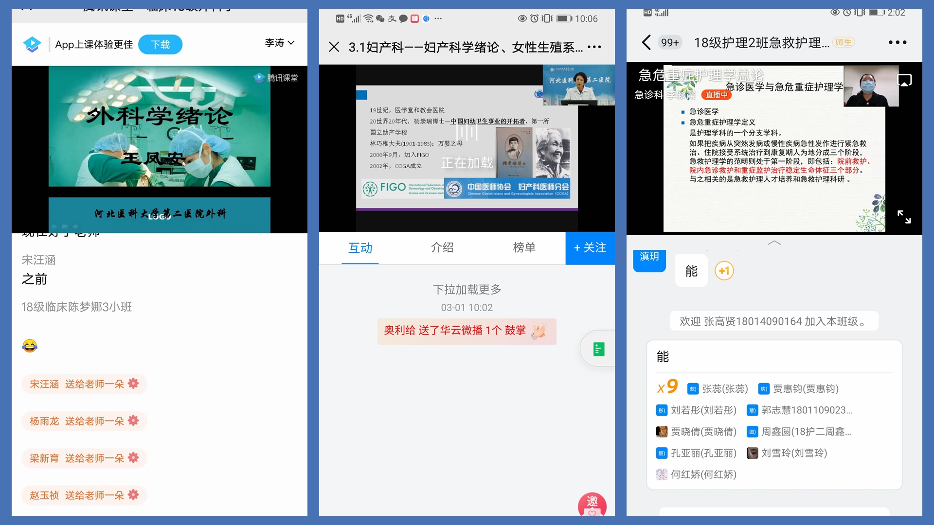 直播期间,每堂课前都滚动播放我院“二院冀疫”宣传片,向学生和家长介绍我院在新冠疫情石家庄保卫战中,以“疫“为令,医院党委靠前指挥,果断决策;各级党组织主动请战、广大党员干部冲锋在前;全院职工秉承大医精诚的医院精神,上下一心、众志成城,各部门密切配合,无数人默默奉献,为了打赢这场疫情防控阻击战,倾力付出的感人事迹。一幅幅勠力同心战疫情的画面,就是一个个生动典型的课程思政案例。那些刚刚在三尺讲台给大家授业解惑的老师们转瞬就白衣执甲、逆行而上的榜样力量让同学们深感共鸣,不仅加深了对医院“大医精诚”精神内涵的理解,激发了大家的爱院意识和集体荣誉感,更坚定了同学们学医济世的初心。