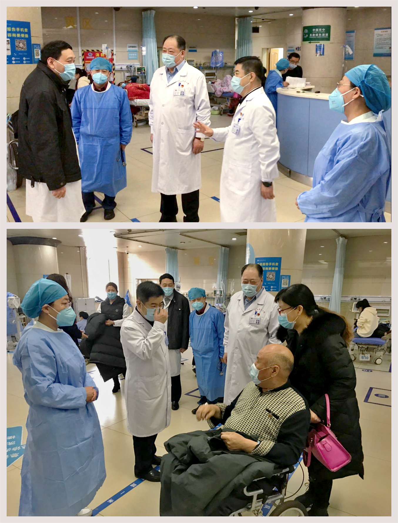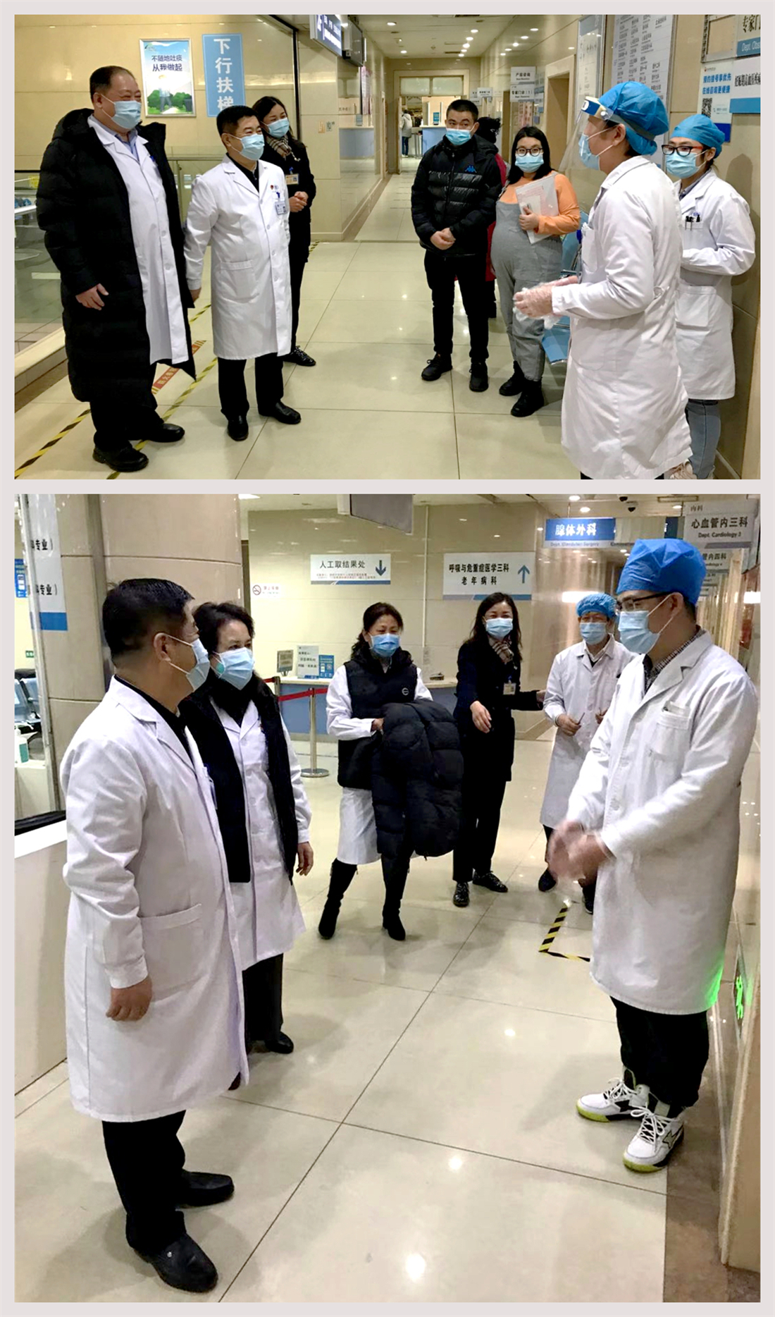 张书记和时院长先后看望了门诊、急诊医务人员和收费处、药房、核酸采集点的工作人员,向大家送去了新春的祝福,并对全院坚守在医疗一线的医务人员展现出的“大医精诚”的医院精神和无私奉献精神,给予充分肯定和高度赞扬。张书记和时院长详细询问了门、急诊接诊情况、患者诊疗情况和疫情防控措施落实情况,并再次强调全院职工要切实提高疫情防控和安全生产意识,继续严格落实院感防控和安全生产各项要求,确保春节期间安全稳定;要进一步提升服务质量和服务水平,为患者提供及时、高效的医疗服务,为群众过好快乐祥和健康的春节提供坚实的保障;要持续做好核酸检测工作,提高检测效率和检测质量,为返乡人员顺利返乡提供保证,为即将到来的复工潮做好充分准备。