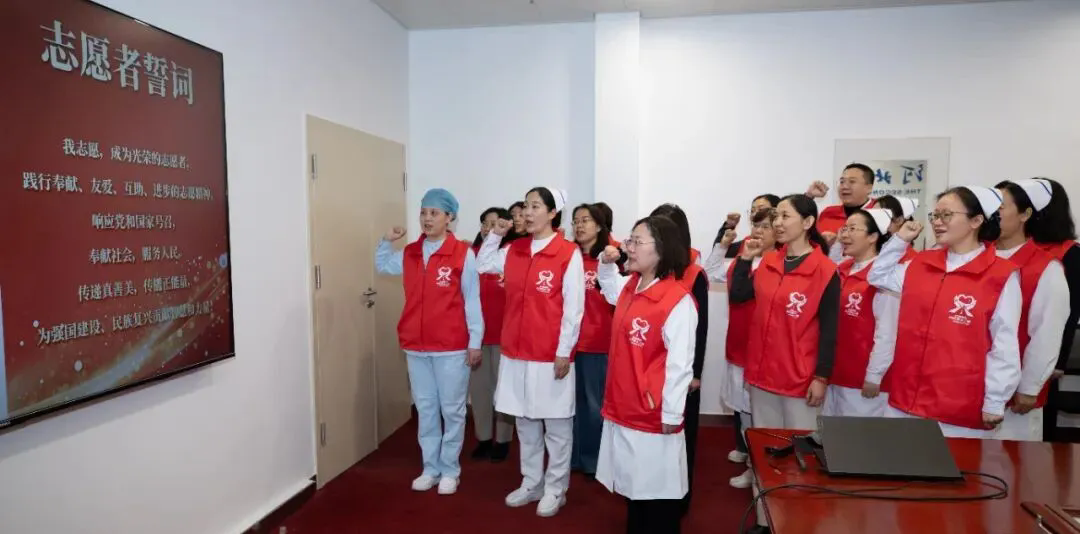郝艳冰带领全队庄严宣誓,全体队员表示将践行奉献、友爱、互助、进步的志愿精神,响应党和国家号召,奉献社会,服务人民,传递真善美,传播正能量,为强国建设、民族复兴贡献智慧和力量。与会各部门负责人对志愿服务队授旗表示了祝贺并提出了希望。