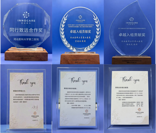 近日,我院皮肤科李艳玲团队在2026年开年获“全国入组第一”后,再度与张晓光团队分别收获两项临床研究项目“卓越入组贡献奖”,临床试验机构获颁“同行致远合作奖”。