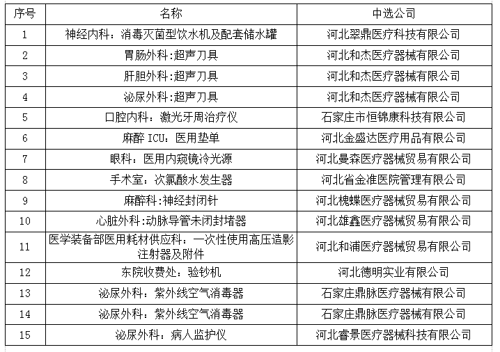 我院于2020年7月23日对以下产品进行了选购,现对中选结果进行公示,(中标公告期限为一个工作日),如下: