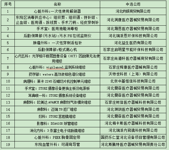 我院于2020年9月24日对以下产品进行了选购,现对中选结果进行公示,(中标公告期限为一个工作日),如下: