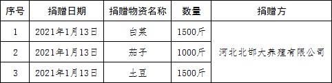 2021年1月13日,我院收到捐赠的抗疫物资,明细附后。