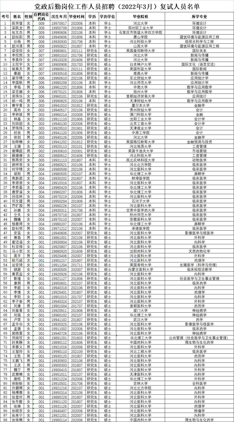 2022年6月13日下午13:00开始(中间休息20分钟) 复试考号32-88号