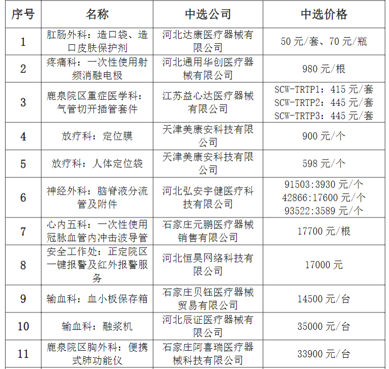 我院于2025年7月31日对以下产品进行了采购,现对中选结果进行公示,(中标公告期限为一个工作日),如下: