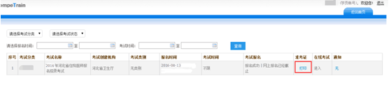 注:学员在“填写报名表”查看自己的状态,如是“报名资格审核通过”即可打印准考证(见下图)。